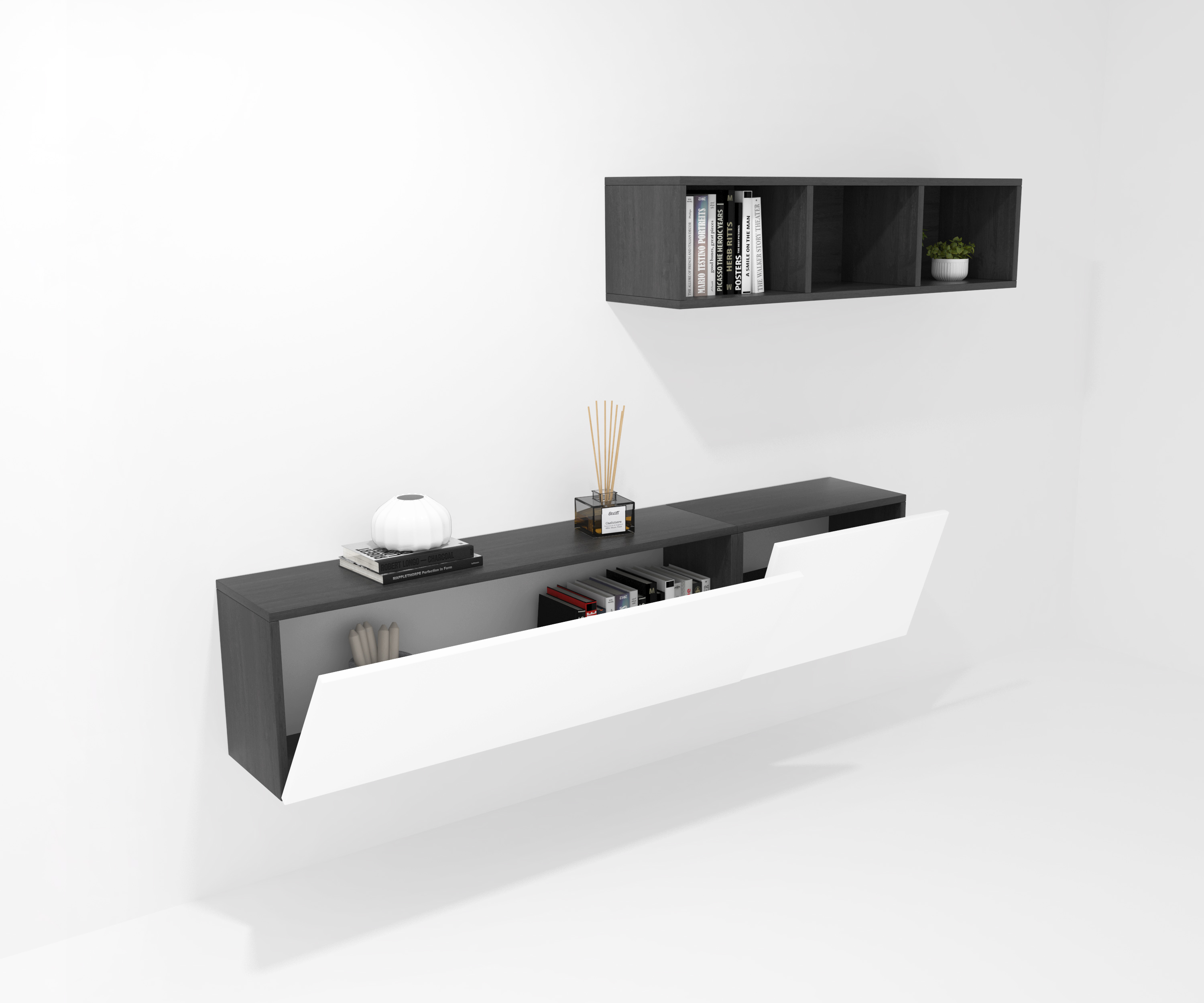 COMPOSICIÓN CREA 11 abatible 120 + abatible 60 + decorativo 120 azabache - puerta blanca
