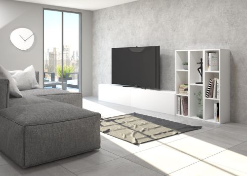 Pack formado por dos muebles con puerta abatible y tres muebles decorativos. Infinidad de combinaciones posibles con todos los módulos o composiciones de la colección CREA. Mueble fabricado en tablero laminado de partículas . Gran capacidad de almacenaje interior. Preparado para ser colgado en la pared con posibilidad de añadir patas o ruedas. Se entrega desmontado, fácil montaje. Fabricado en España.