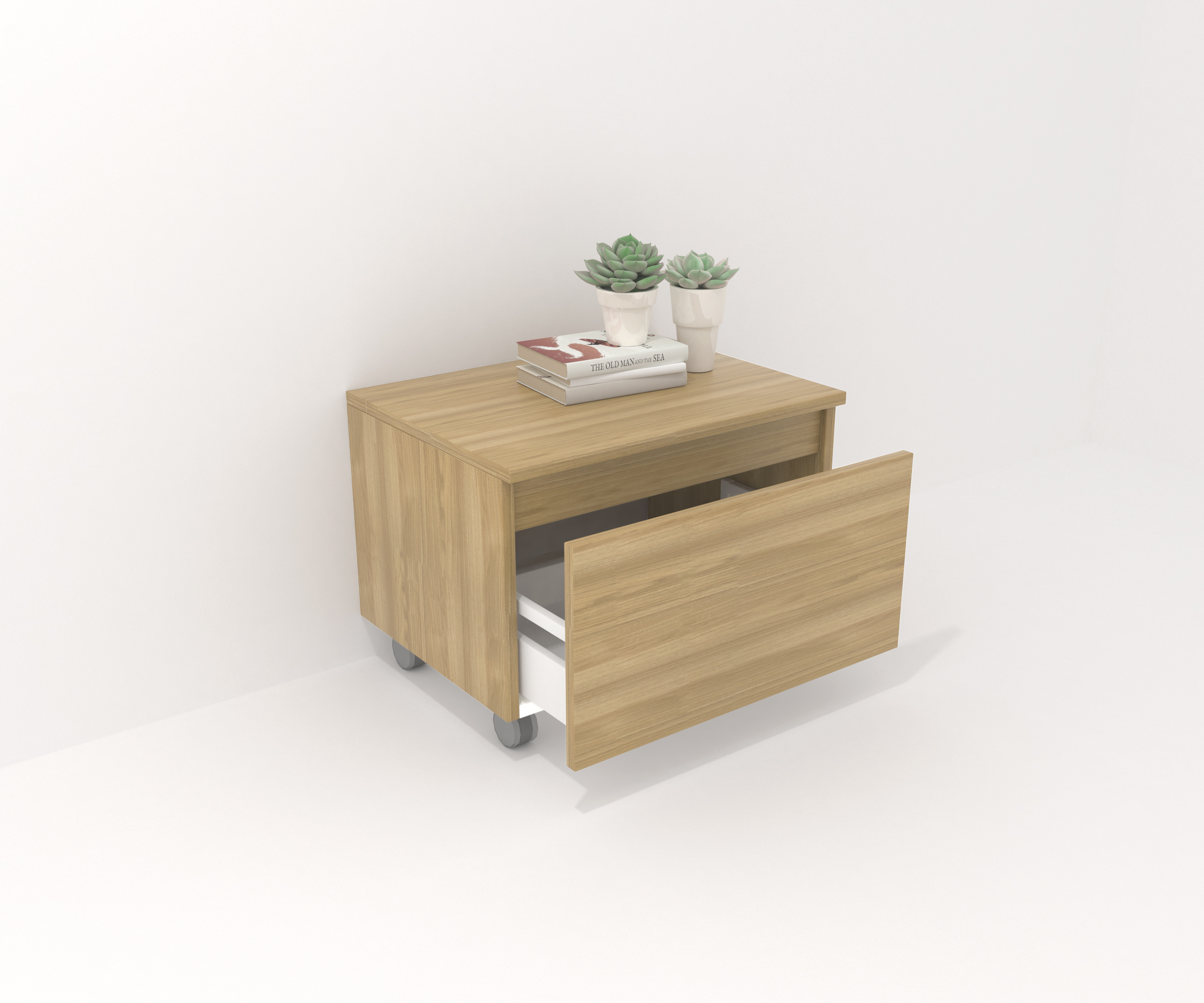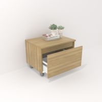 Mueble auxiliar fabricado en material laminado de 19mm. Compuesto por un cajón de gran capacidad, totalmente extraíble y con cierre suave. Perfecto para colocar bajo un lavabo suspendido o para ampliar el espacio de almacenaje en cualquier rincón. Fabricado en España.
