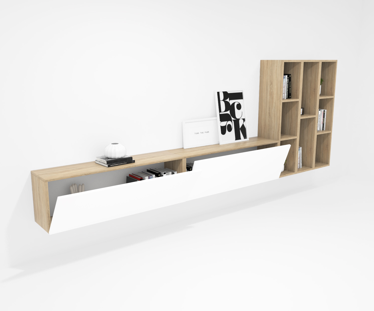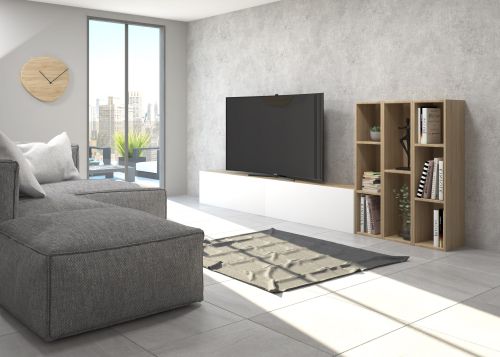 Pack formado por dos muebles con puerta abatible y tres muebles decorativos. Infinidad de combinaciones posibles con todos los módulos o composiciones de la colección CREA. Mueble fabricado en tablero laminado de partículas . Gran capacidad de almacenaje interior. Preparado para ser colgado en la pared con posibilidad de añadir patas o ruedas. Se entrega desmontado, fácil montaje. Fabricado en España.