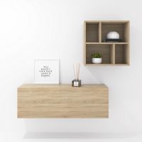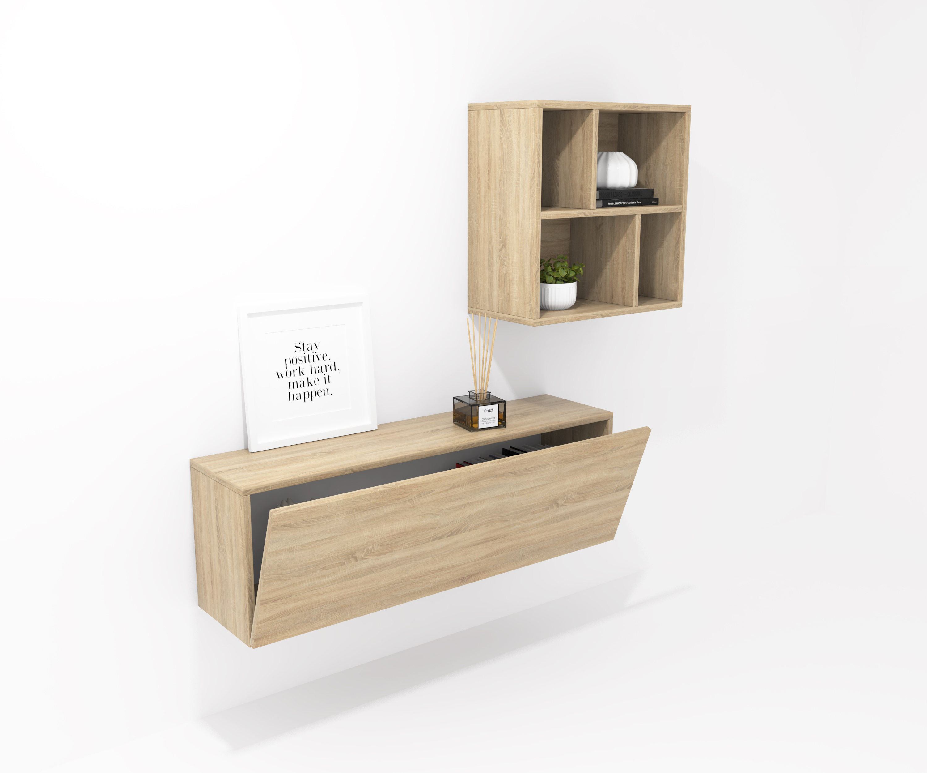 Pack formado por un mueble con puerta abatible y un mueble decorativo. Infinidad de combinaciones posibles con todos los módulos o composiciones de la colección CREA. Mueble fabricado en tablero laminado de partículas . Gran capacidad de almacenaje interior. Preparado para ser colgado en la pared con posibilidad de añadir patas o ruedas. Se entrega desmontado, fácil montaje. Fabricado en España.