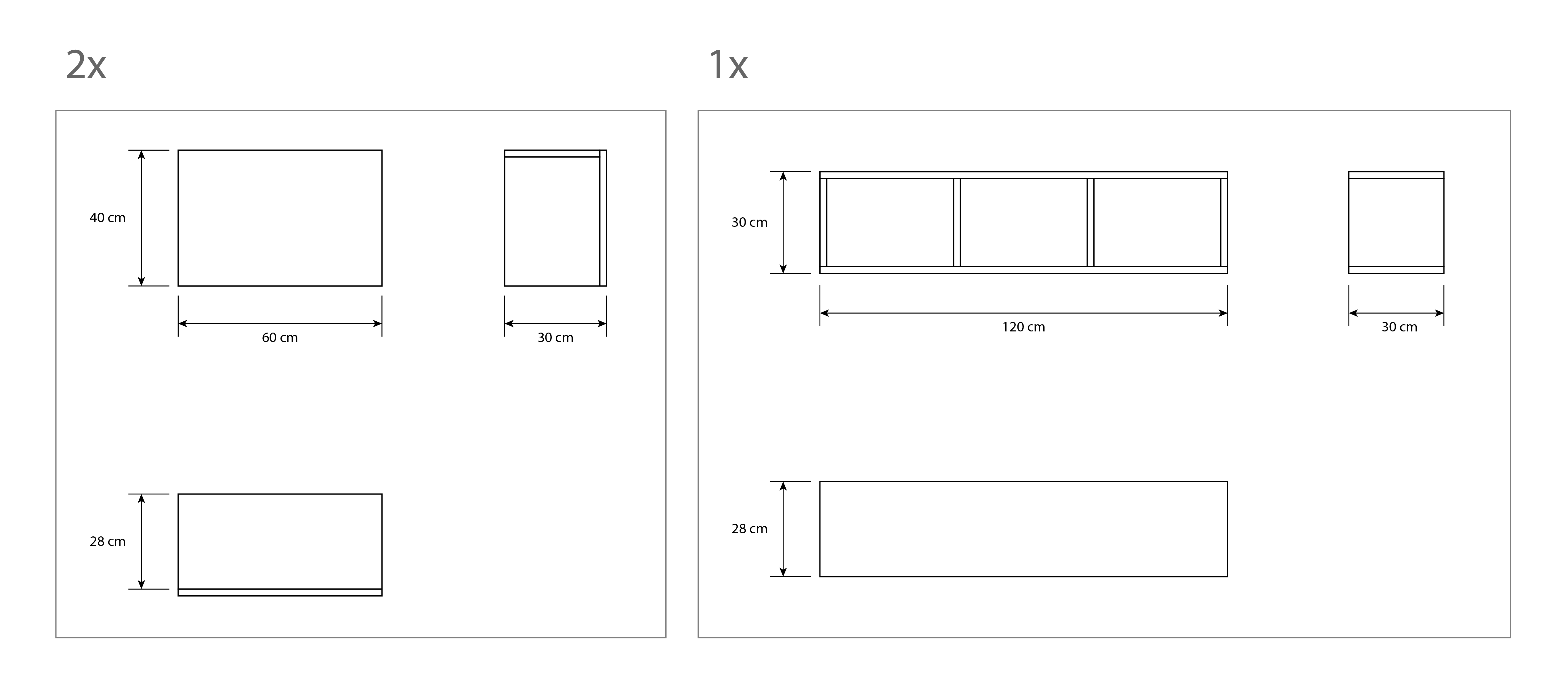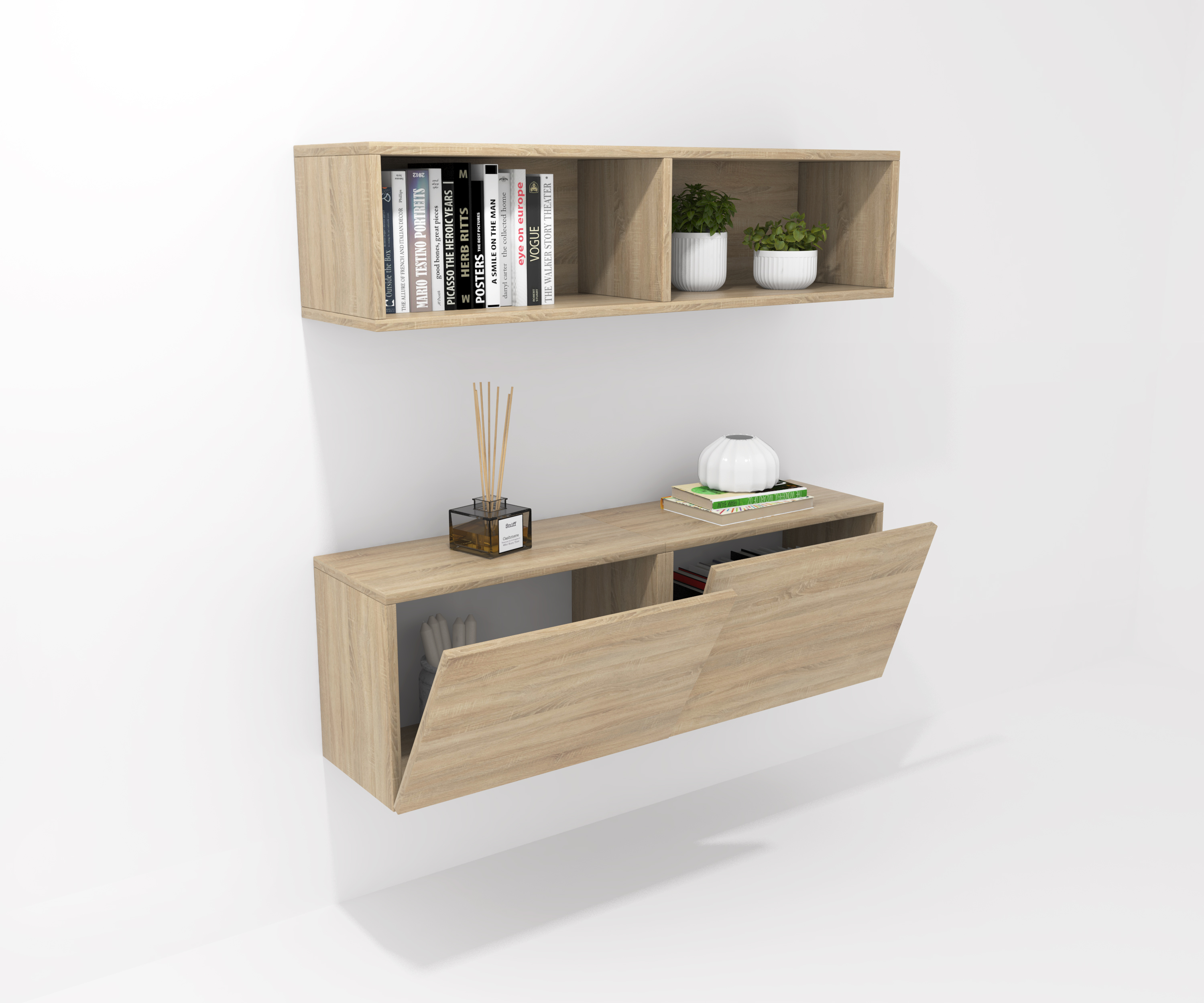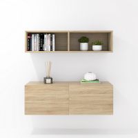 Pack formado por dos muebles con puerta abatible. Infinidad de combinaciones posibles con todos los módulos o composiciones de la colección CREA. Mueble fabricado en tablero laminado de partículas . Gran capacidad de almacenaje interior. Preparado para ser colgado en la pared con posibilidad de añadir patas o ruedas. Se entrega desmontado, fácil montaje. Fabricado en España.