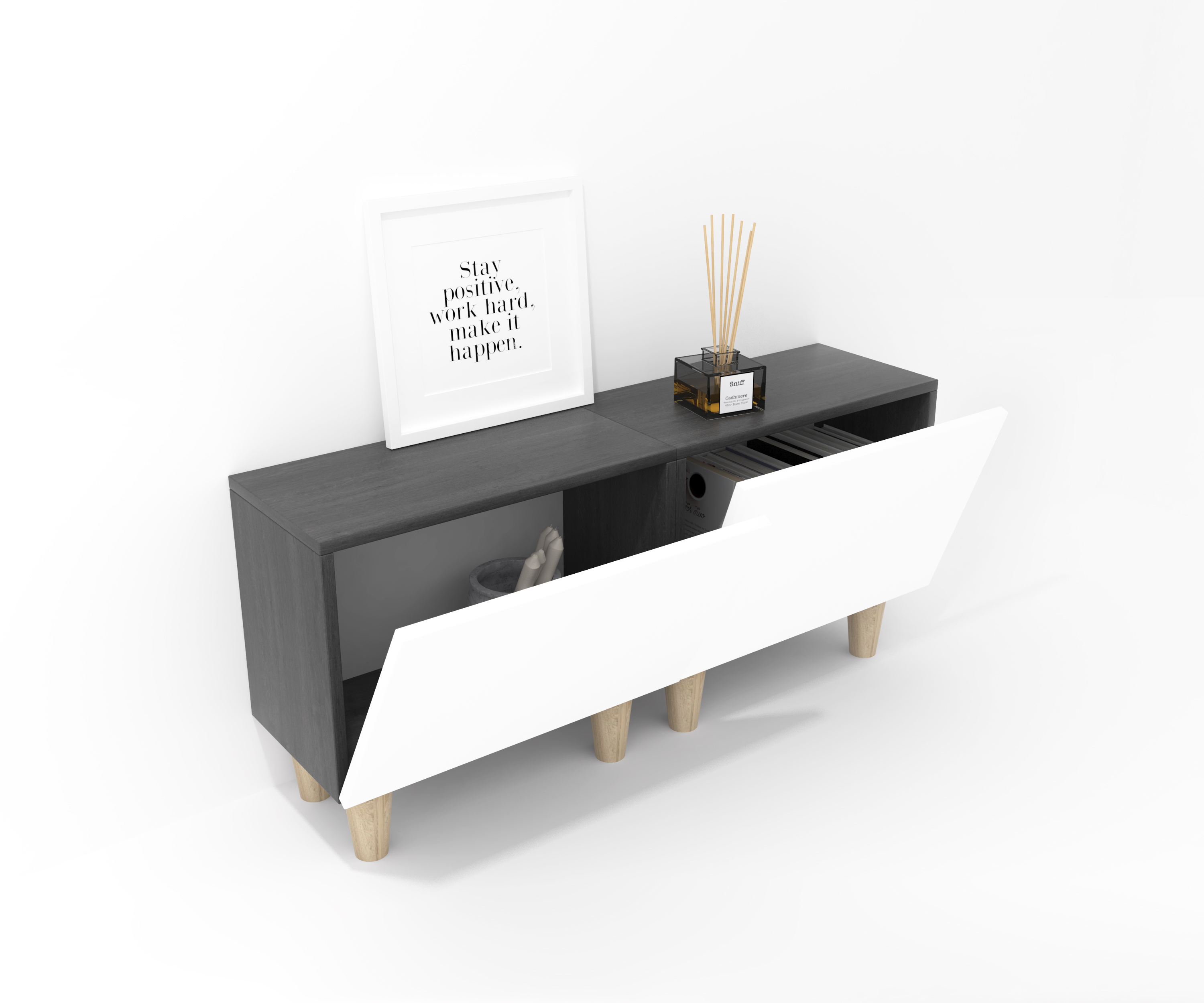 Pack formado por dos muebles con puerta abatible. Infinidad de combinaciones posibles con todos los módulos o composiciones de la colección CREA. Mueble fabricado en tablero laminado de partículas . Gran capacidad de almacenaje interior. Preparado para ser colgado en la pared con posibilidad de añadir patas o ruedas. Se entrega desmontado, fácil montaje. Fabricado en España.