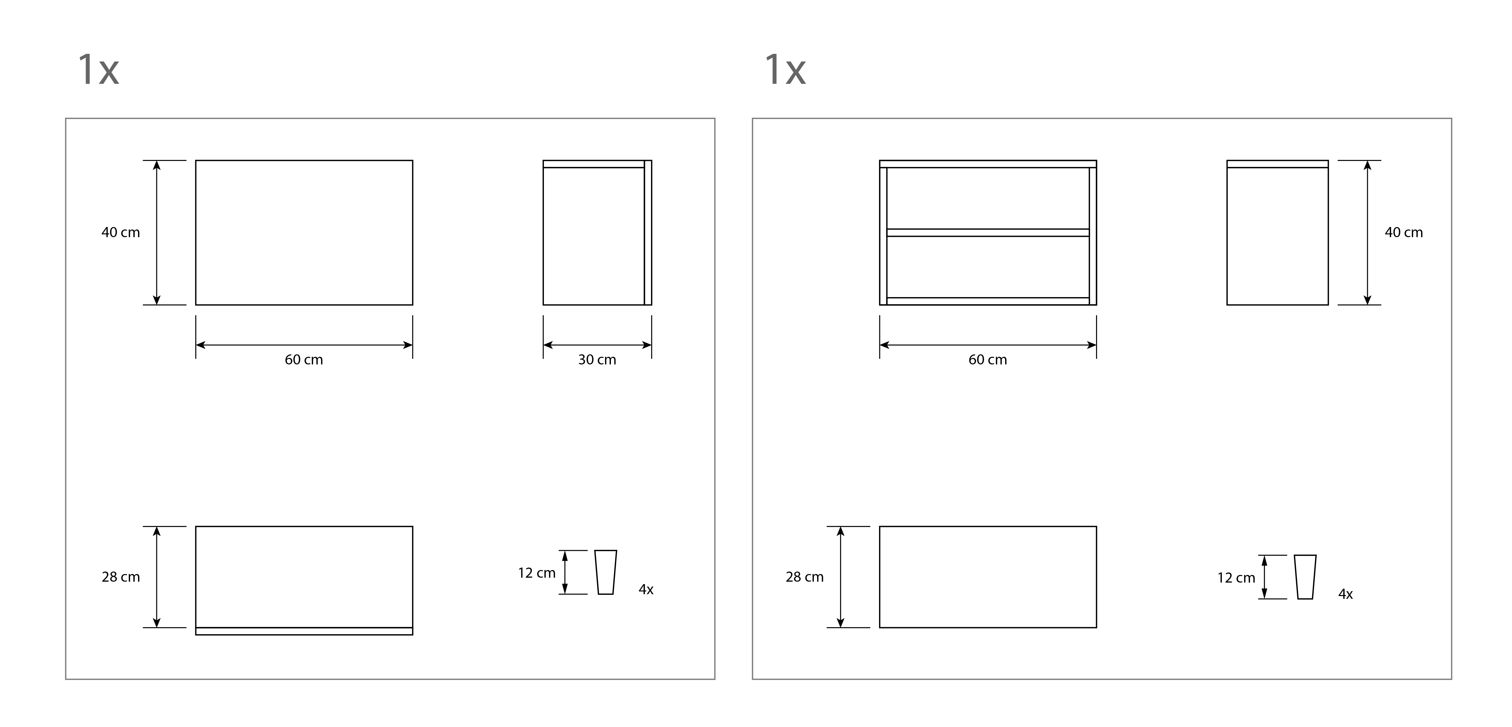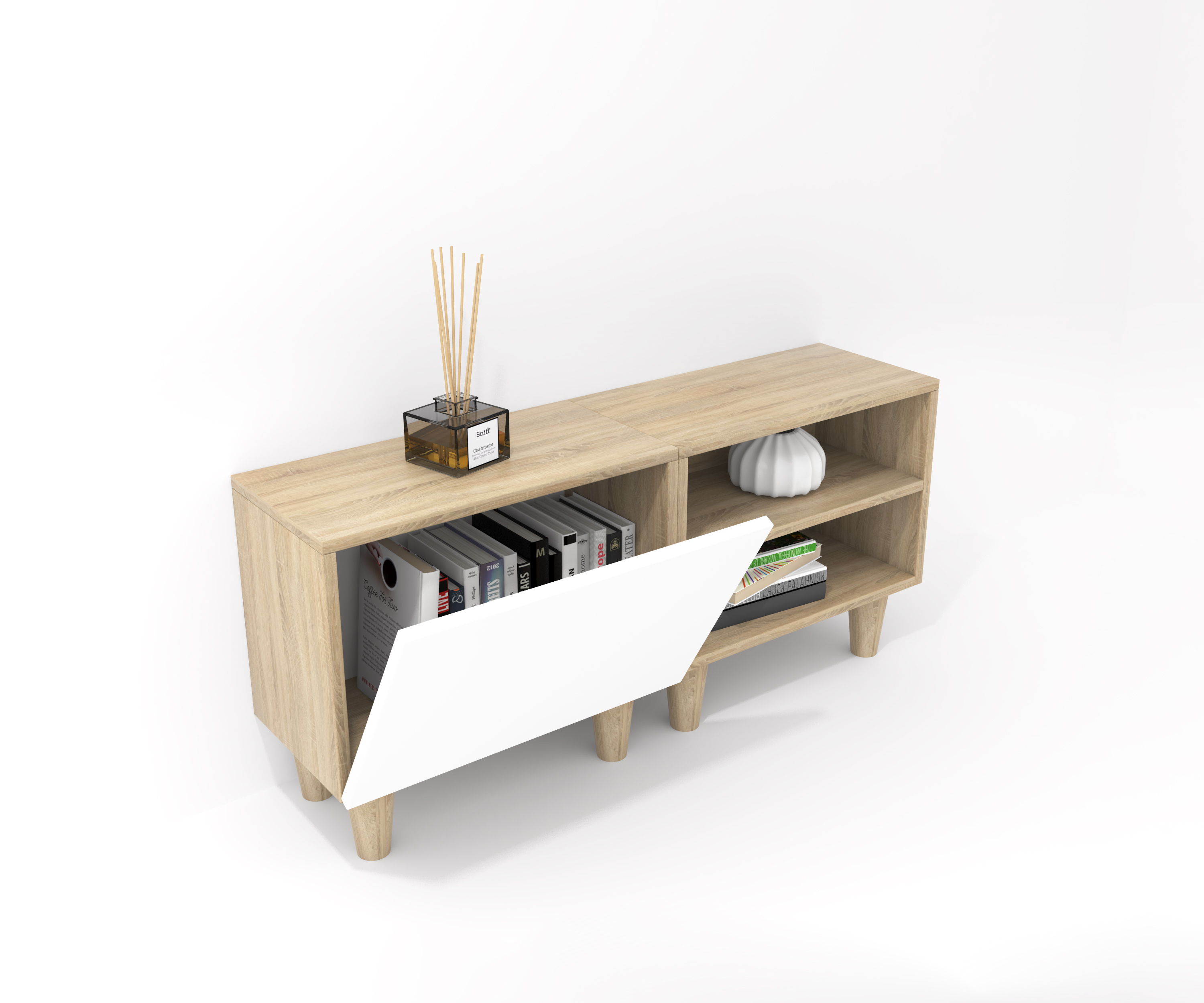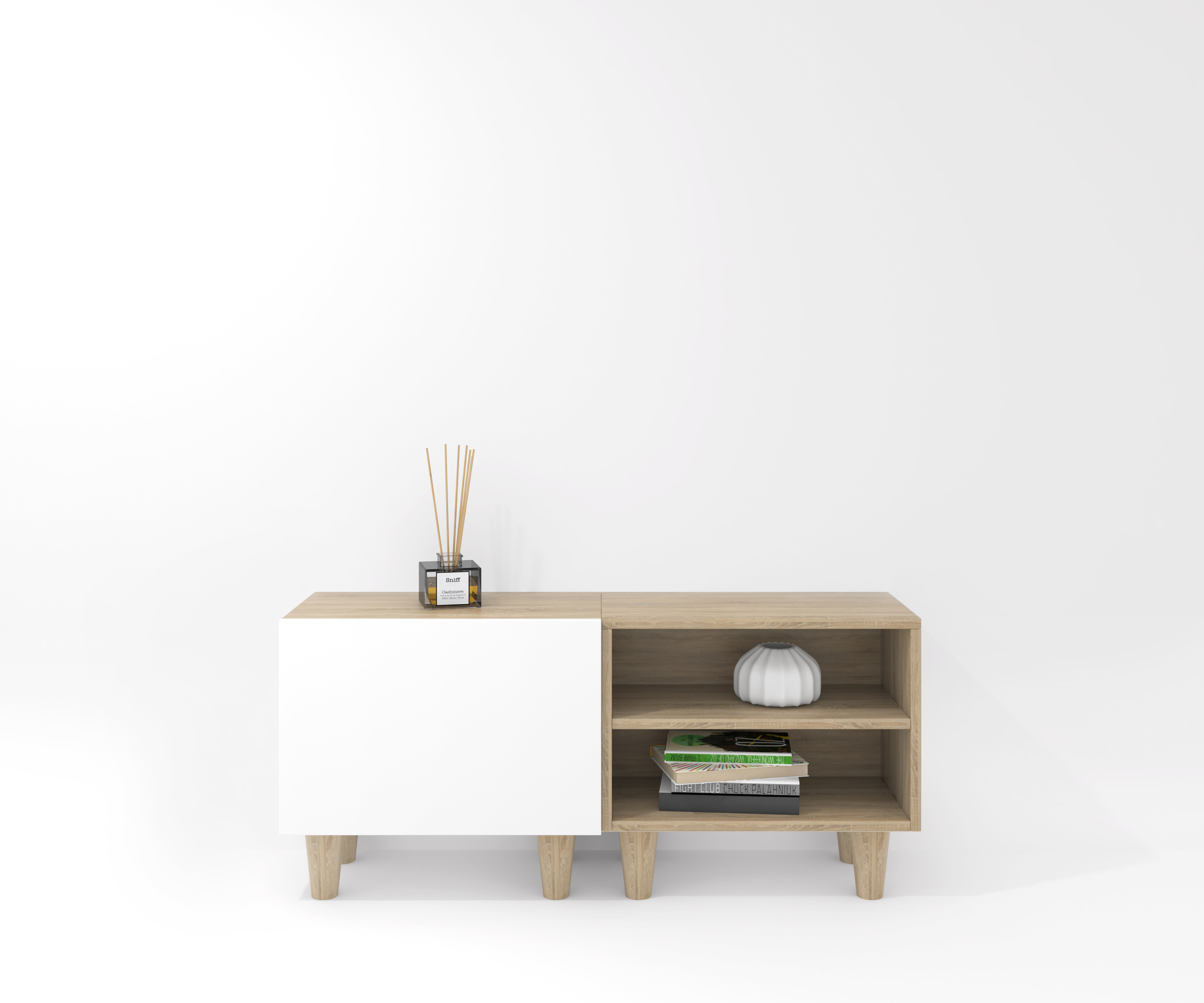 Pack formado por un mueble con puerta abatible y un mueble decorativo. Infinidad de combinaciones posibles con todos los módulos o composiciones de la colección CREA. Mueble fabricado en tablero laminado de partículas . Gran capacidad de almacenaje interior. Preparado para ser colgado en la pared con posibilidad de añadir patas o ruedas. Se entrega desmontado, fácil montaje. Fabricado en España.