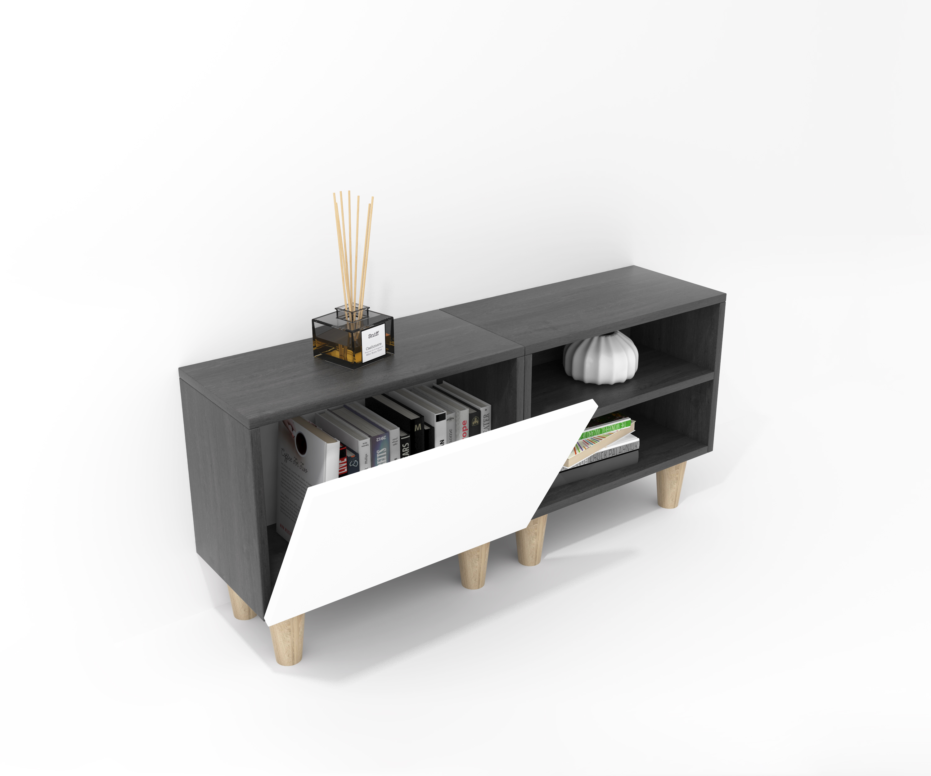 Pack formado por un mueble con puerta abatible y un mueble decorativo. Infinidad de combinaciones posibles con todos los módulos o composiciones de la colección CREA. Mueble fabricado en tablero laminado de partículas . Gran capacidad de almacenaje interior. Preparado para ser colgado en la pared con posibilidad de añadir patas o ruedas. Se entrega desmontado, fácil montaje. Fabricado en España.