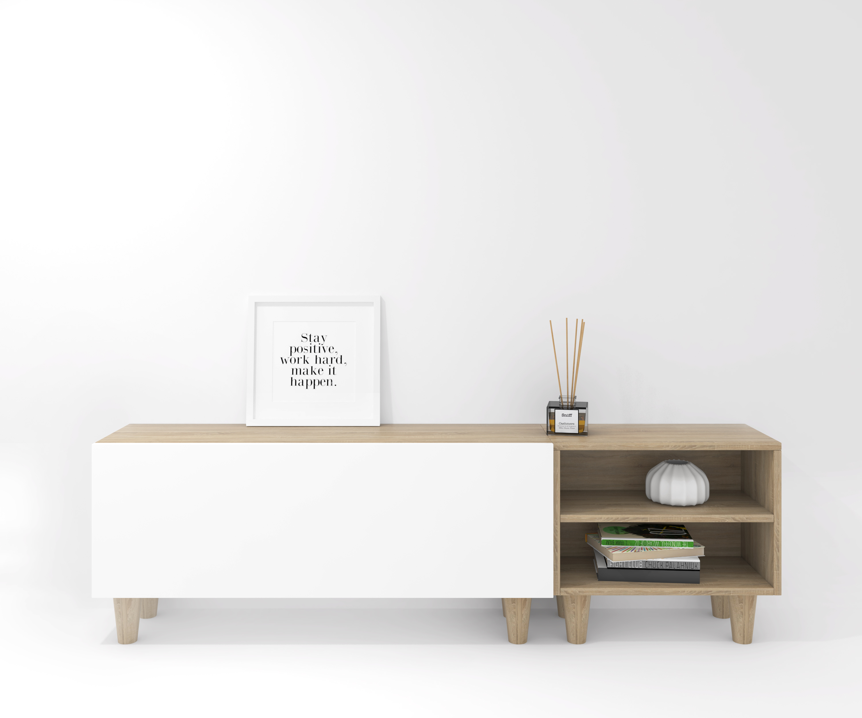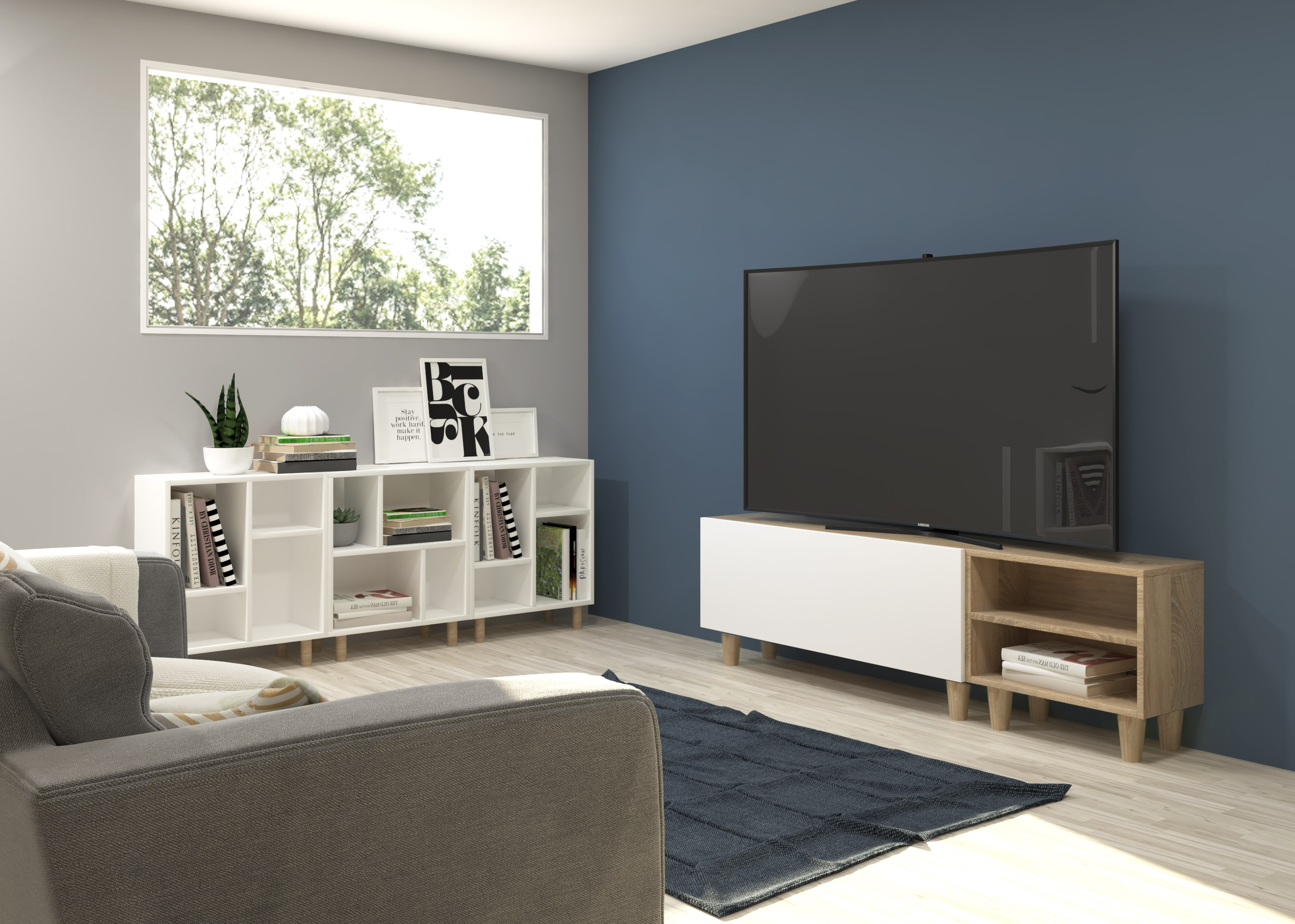 Pack formado por un mueble con puerta abatible y un mueble decorativo. Infinidad de combinaciones posibles con todos los módulos o composiciones de la colección CREA. Mueble fabricado en tablero laminado de partículas . Gran capacidad de almacenaje interior. Preparado para ser colgado en la pared con posibilidad de añadir patas o ruedas. Se entrega desmontado, fácil montaje. Fabricado en España.