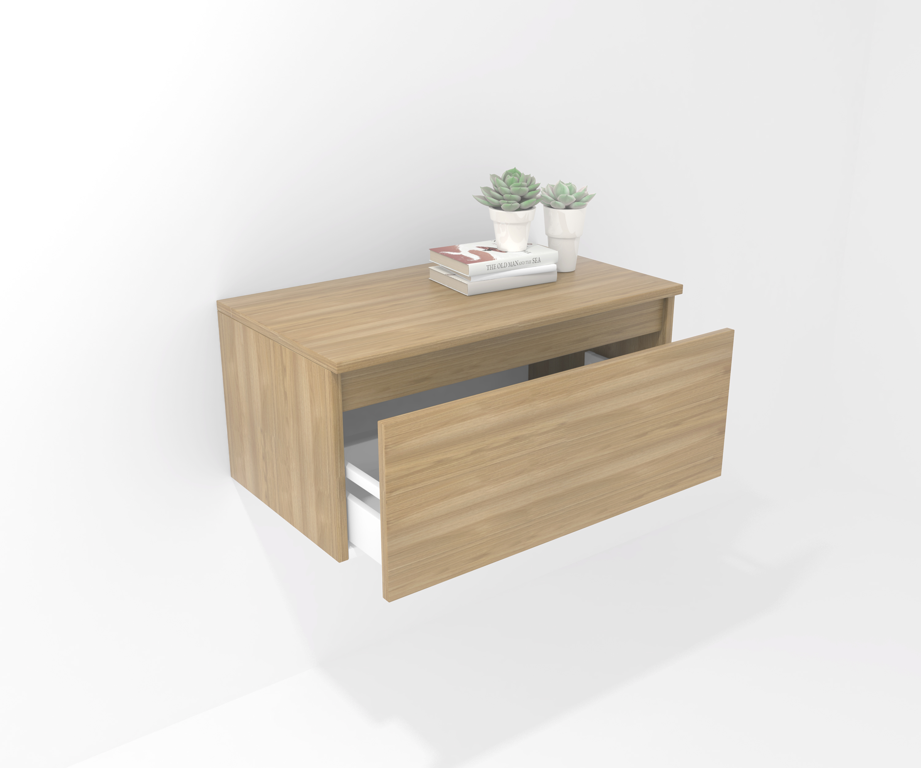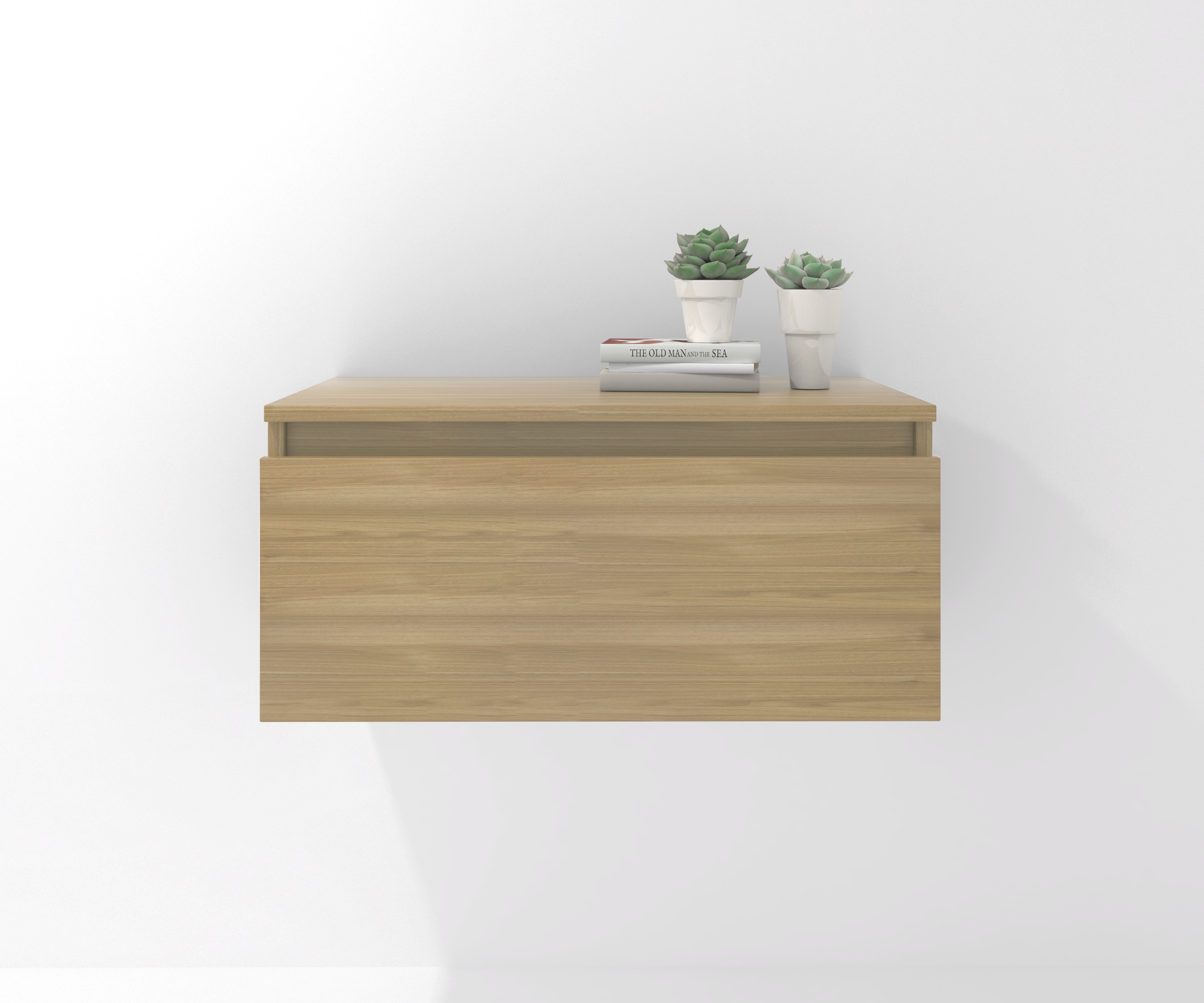 Mueble auxiliar fabricado en material laminado de 19mm. Compuesto por un cajón de gran capacidad, totalmente extraíble y con cierre suave. Perfecto para colocar bajo un lavabo suspendido o para ampliar el espacio de almacenaje en cualquier rincón. Fabricado en España.