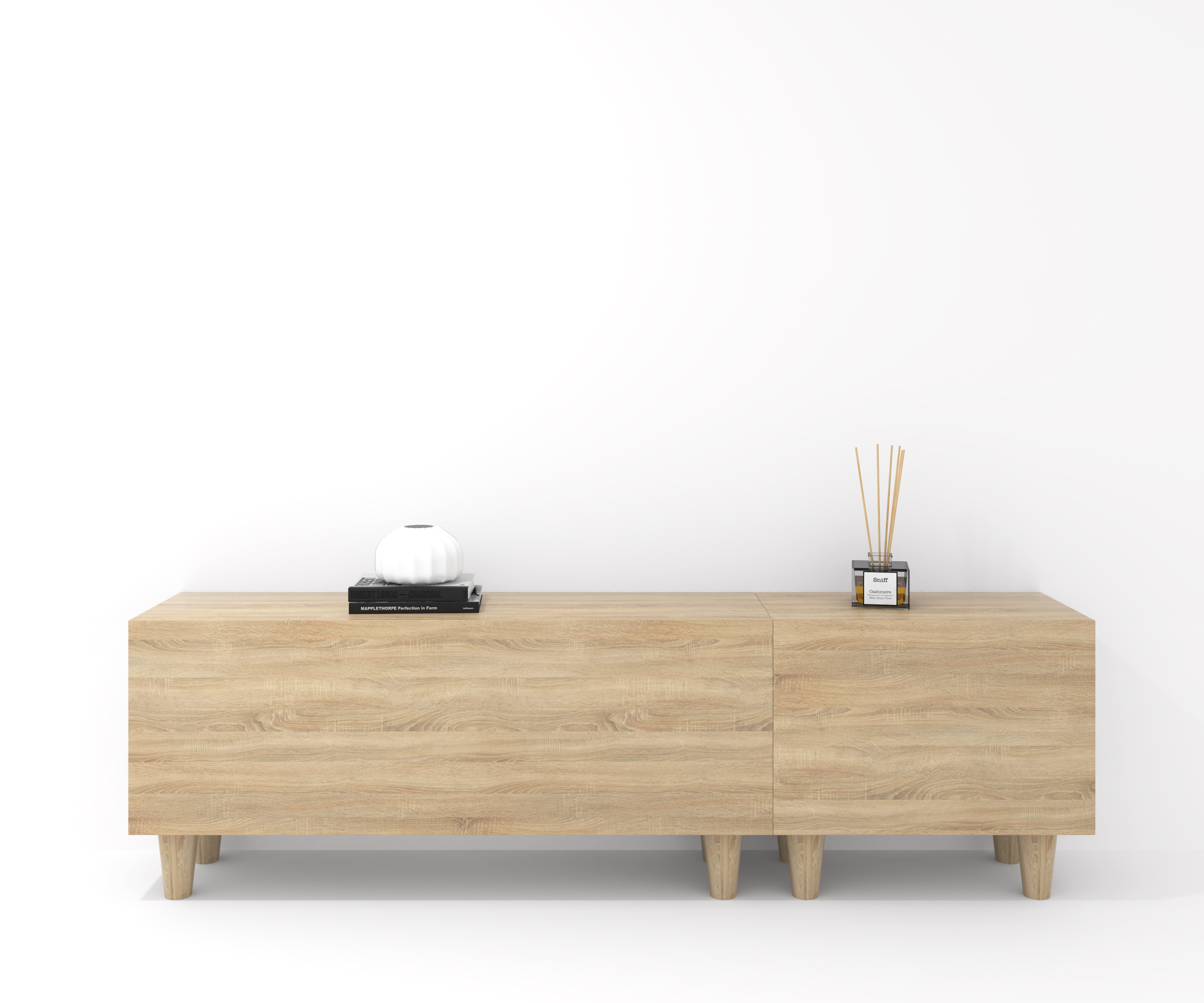 Pack formado por dos muebles con puerta abatible. Infinidad de combinaciones posibles con todos los módulos o composiciones de la colección CREA. Mueble fabricado en tablero laminado de partículas . Gran capacidad de almacenaje interior. Preparado para ser colgado en la pared con posibilidad de añadir patas o ruedas. Se entrega desmontado, fácil montaje. Fabricado en España.