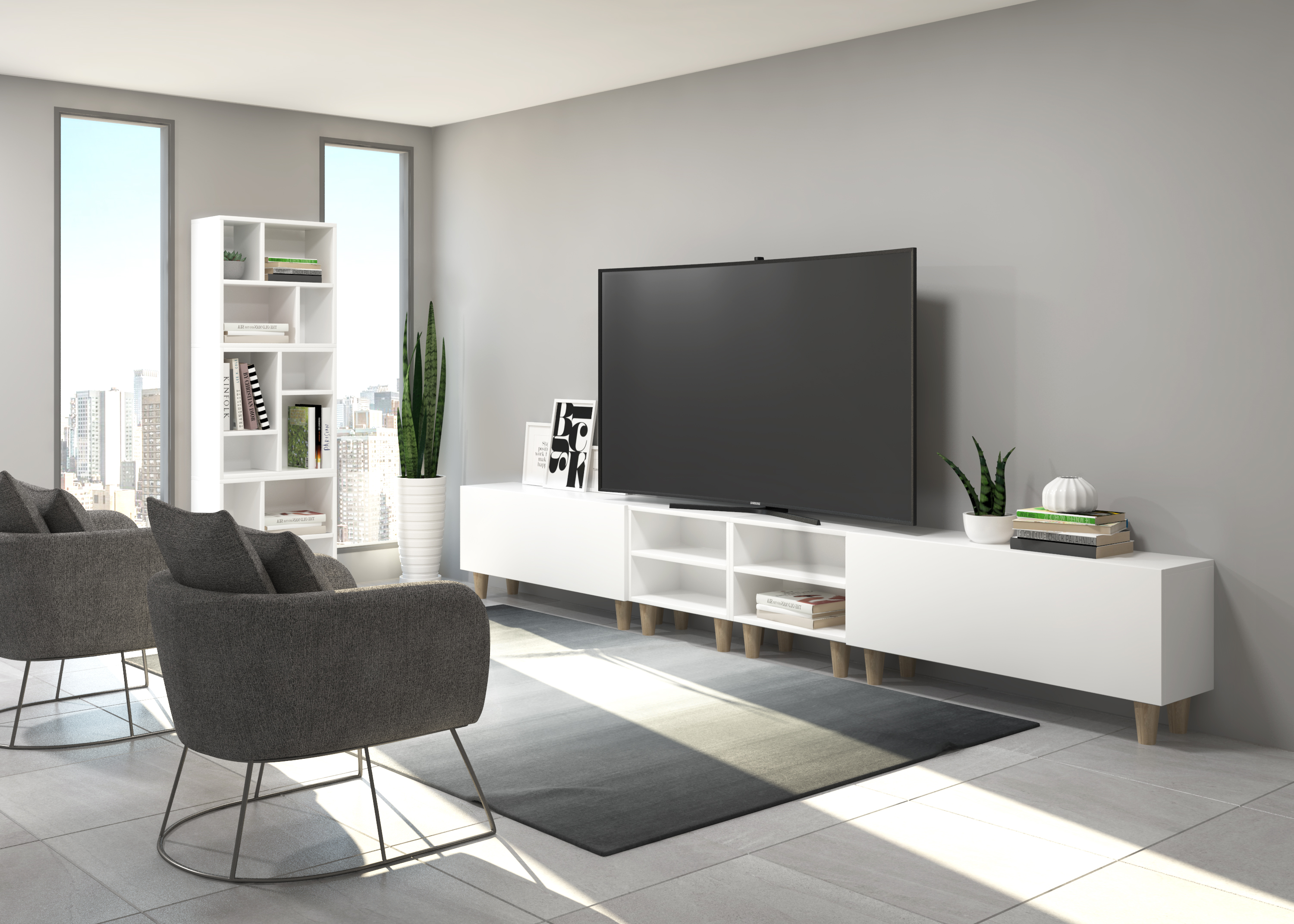 Pack formado por dos muebles con puerta abatible y dos muebles decorativos. Infinidad de combinaciones posibles con todos los módulos o composiciones de la colección CREA. Mueble fabricado en tablero laminado de partículas . Gran capacidad de almacenaje interior. Preparado para ser colgado en la pared con posibilidad de añadir patas o ruedas. Se entrega desmontado, fácil montaje. Fabricado en España.