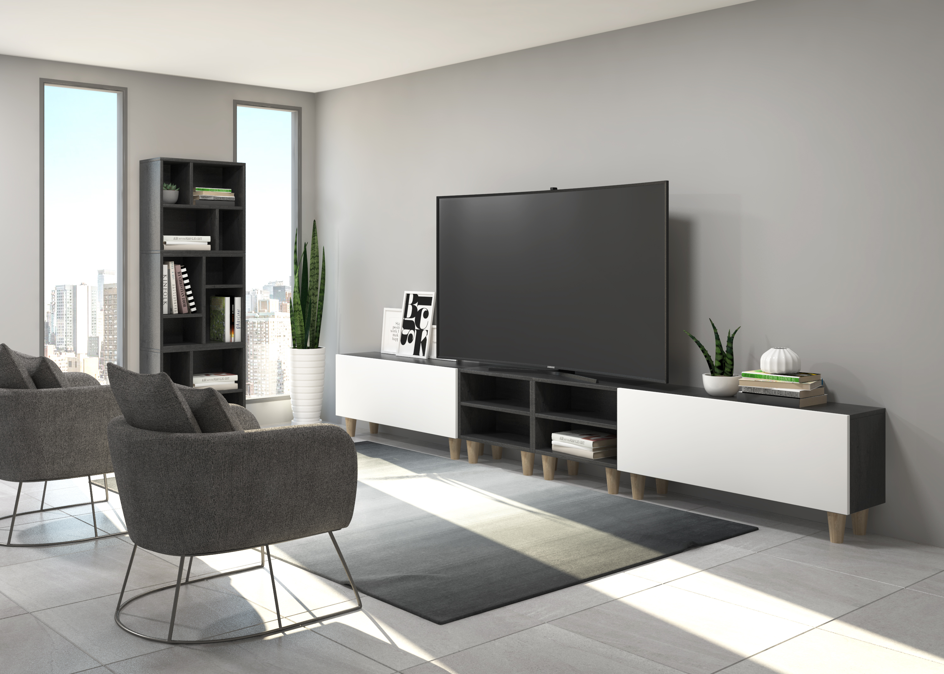 985,00€ COMPOSICIÓN CREA 10 abatible 120 + 2 decorativo 60 + abatible 120 azabache PATAS - puerta blanca
