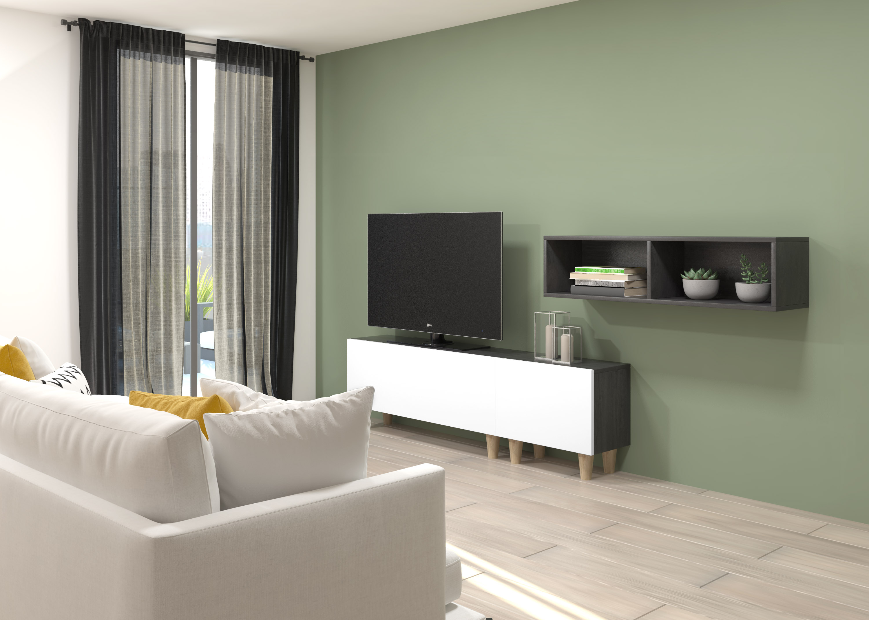 COMPOSICIÓN CREA 11 abatible 120 + abatible 60 + decorativo 120 azabache PATAS - puerta blanca