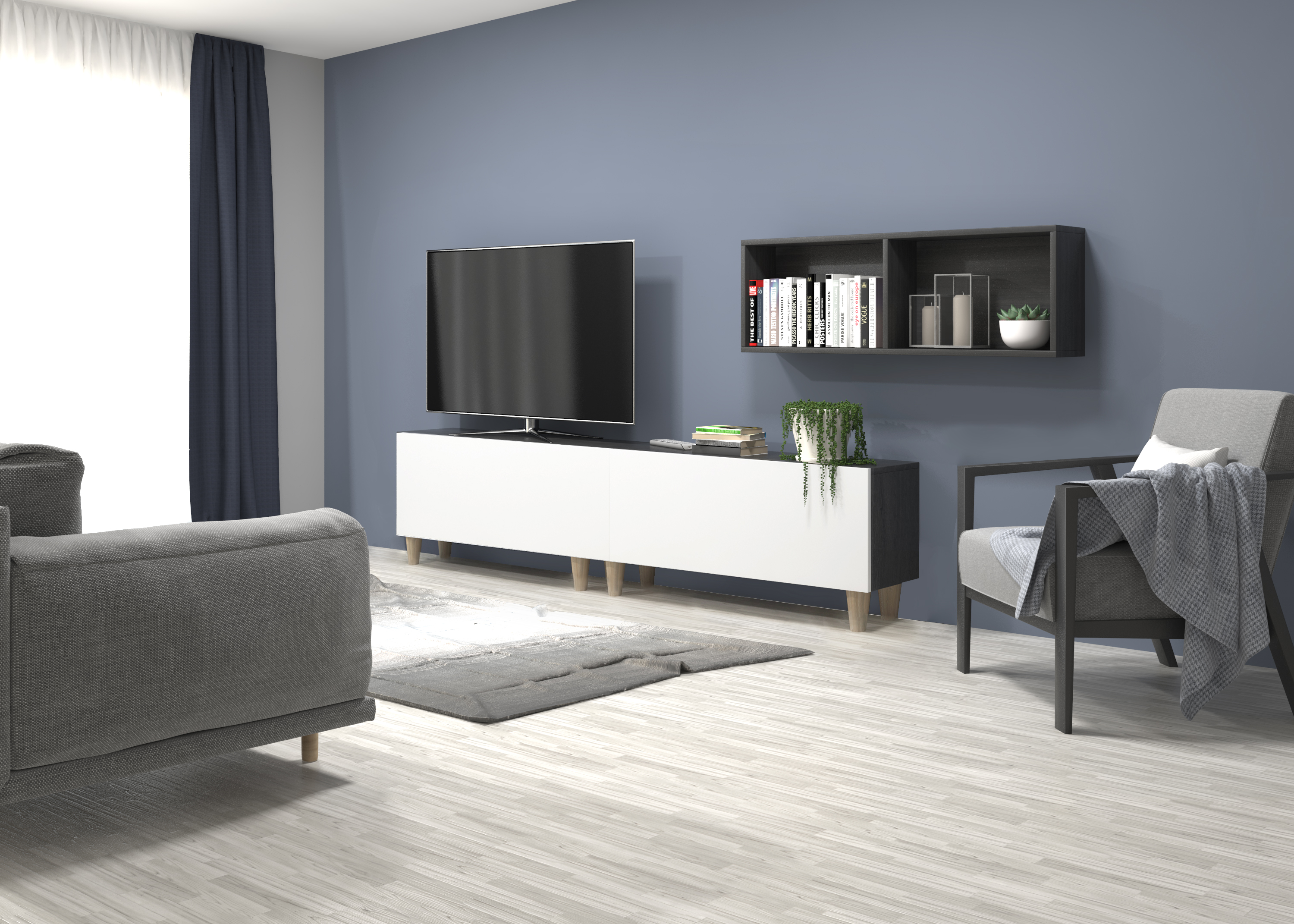 Pack formado por tres muebles con puerta abatible y dos muebles decorativos. Infinidad de combinaciones posibles con todos los módulos o composiciones de la colección CREA. Mueble fabricado en tablero laminado de partículas . Gran capacidad de almacenaje interior. Preparado para ser colgado en la pared con posibilidad de añadir patas o ruedas. Se entrega desmontado, fácil montaje. Fabricado en España.