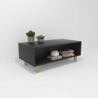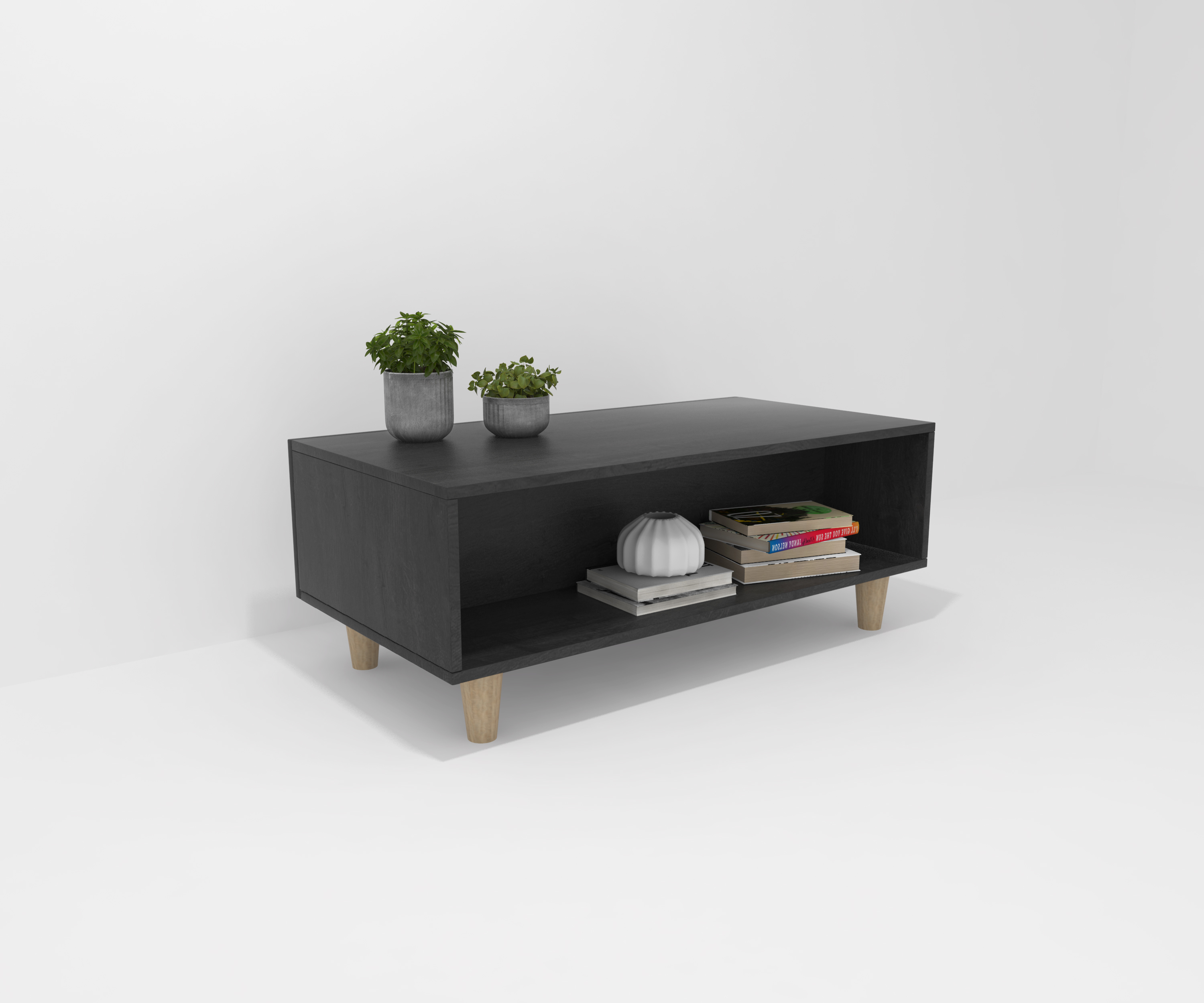 Mesa de centro fabricada en tablero laminado de partículas, con un espacio decorativo y un cajón abatible con capacidad de almacenaje. Infinidad de combinaciones posibles con todos los módulos o composiciones de la colección CREA. Patas de madera. Se entrega desmontado, fácil montaje. Fabricado en España.