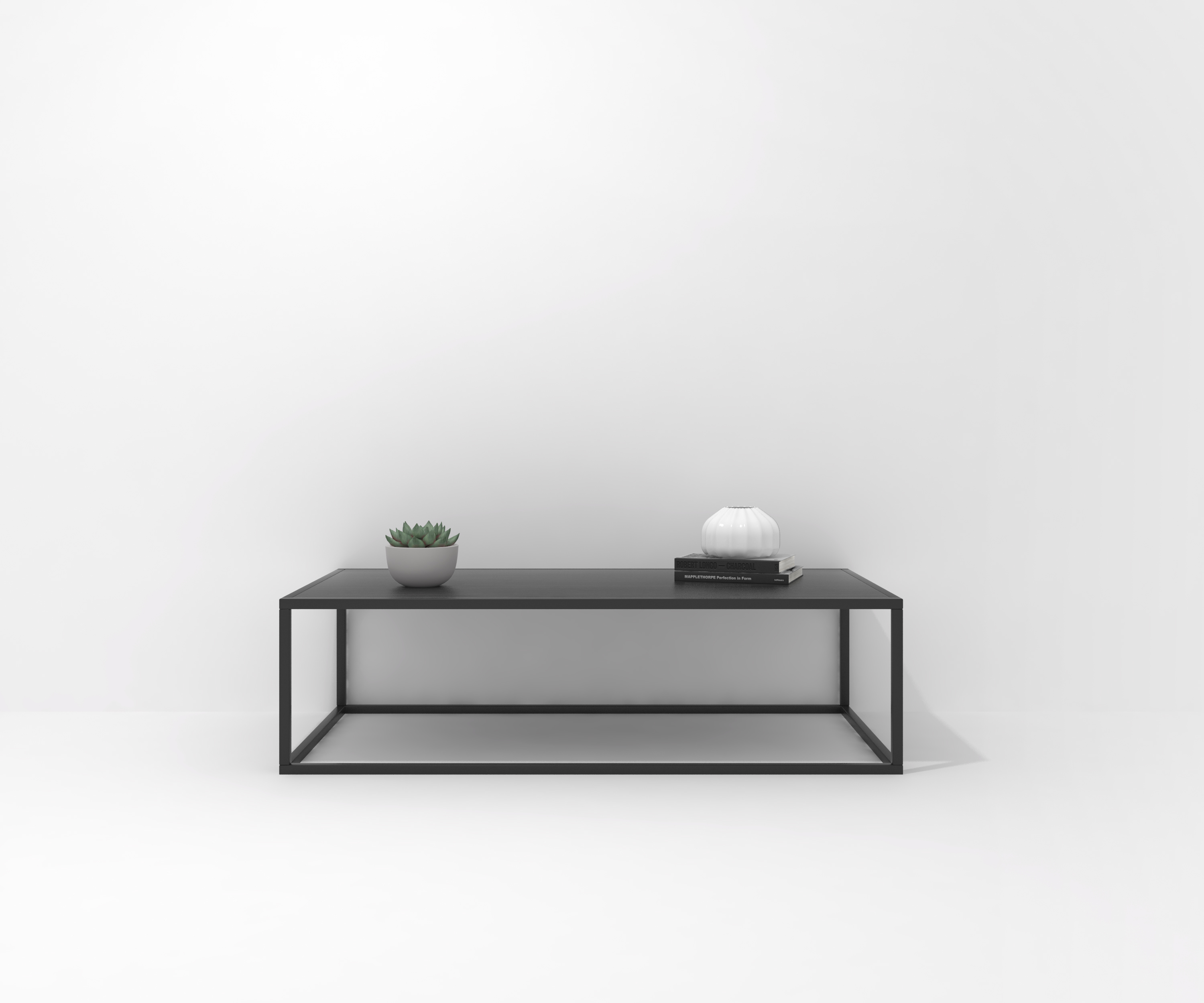 Mesa de centro decorativa con estructura metálica acabado negro mate y tablero en laminado de partículas. Infinidad de combinaciones posibles con todos los módulos o composiciones de la colección CREA. Se entrega desmontado, fácil montaje. Fabricado en España.