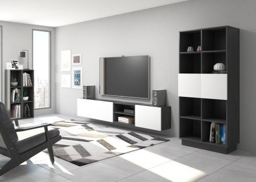Estantería decorativa fabricada en tablero laminado de partículas. Infinidad de combinaciones posibles con todos los módulos o composiciones de la colección CREA. Se entrega desmontado, fácil montaje. Fabricado en España.