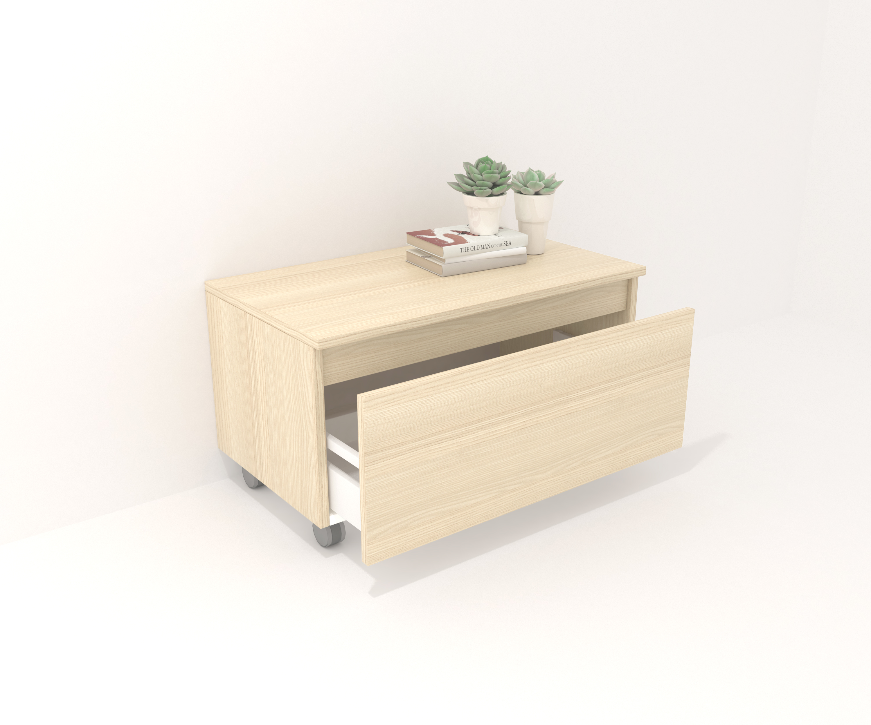 Mueble auxiliar fabricado en material laminado de 19mm. Compuesto por un cajón de gran capacidad, totalmente extraíble y con cierre suave. Perfecto para colocar bajo un lavabo suspendido o para ampliar el espacio de almacenaje en cualquier rincón. Fabricado en España.
