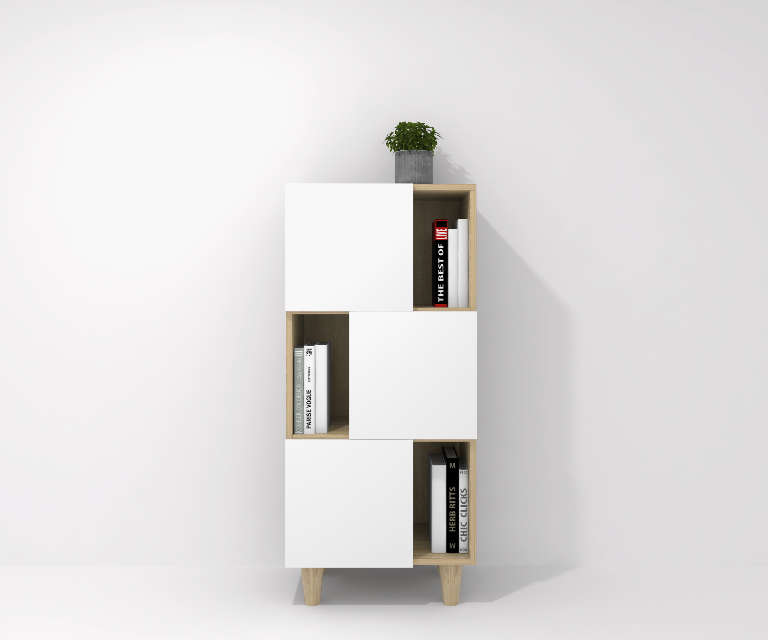 Aparador decorativo fabricado en tablero laminado de partículas. Infinidad de combinaciones posibles con todos los módulos o composiciones de la colección CREA. Se entrega desmontado, fácil montaje. Fabricado en España.