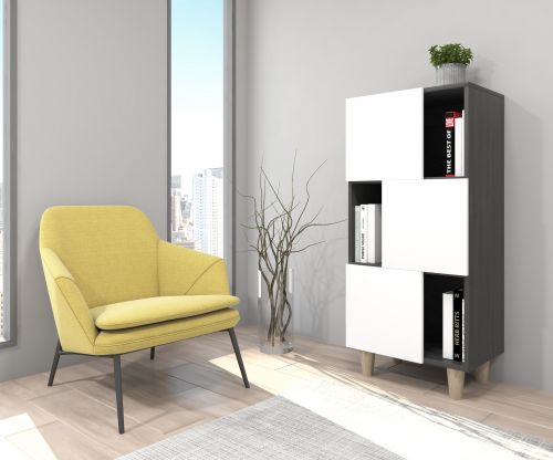 Aparador decorativo fabricado en tablero laminado de partículas. Infinidad de combinaciones posibles con todos los módulos o composiciones de la colección CREA. Se entrega desmontado, fácil montaje. Fabricado en España.