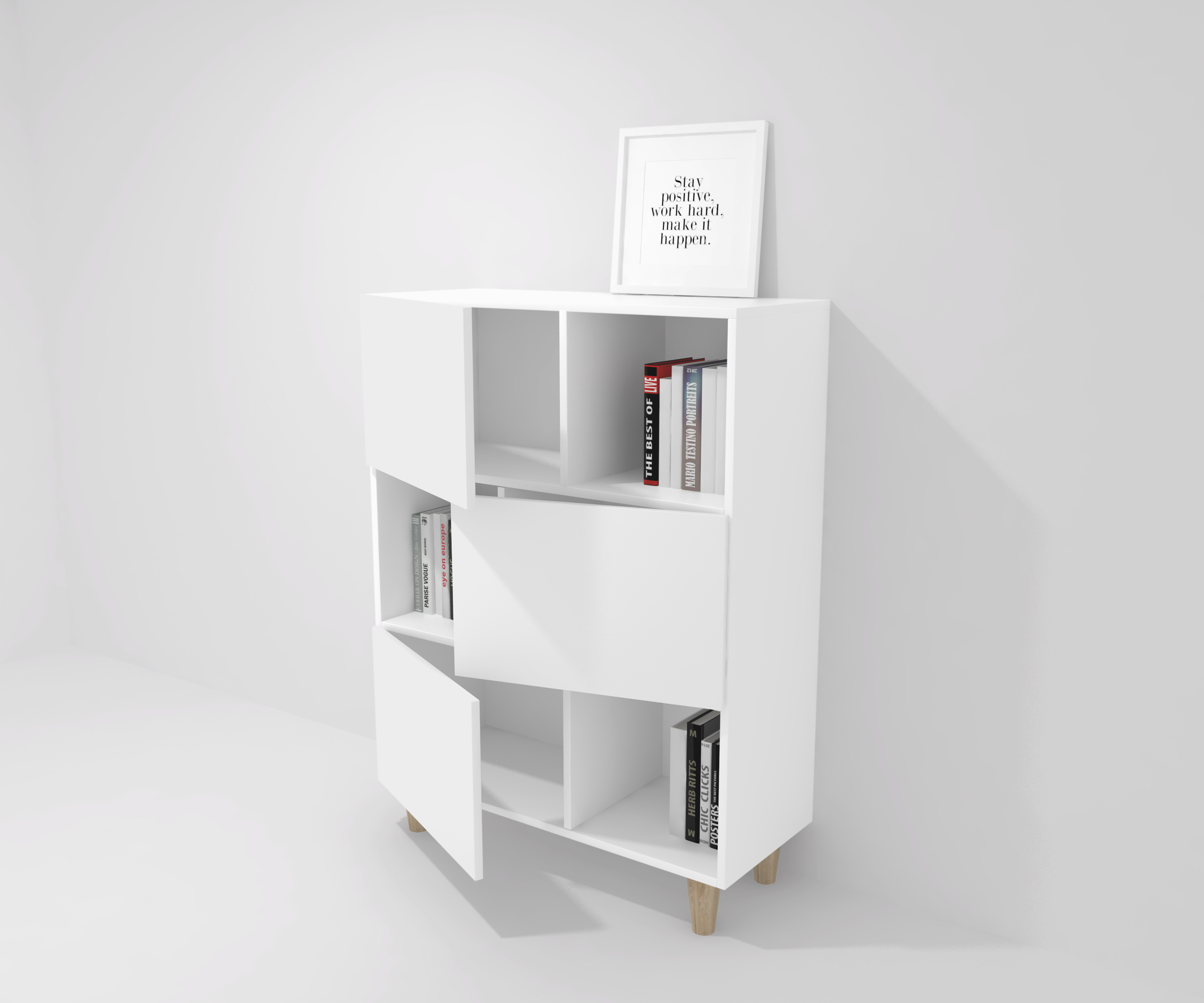 Aparador decorativo fabricado en tablero laminado de partículas. Infinidad de combinaciones posibles con todos los módulos o composiciones de la colección CREA. Se entrega desmontado, fácil montaje. Fabricado en España.