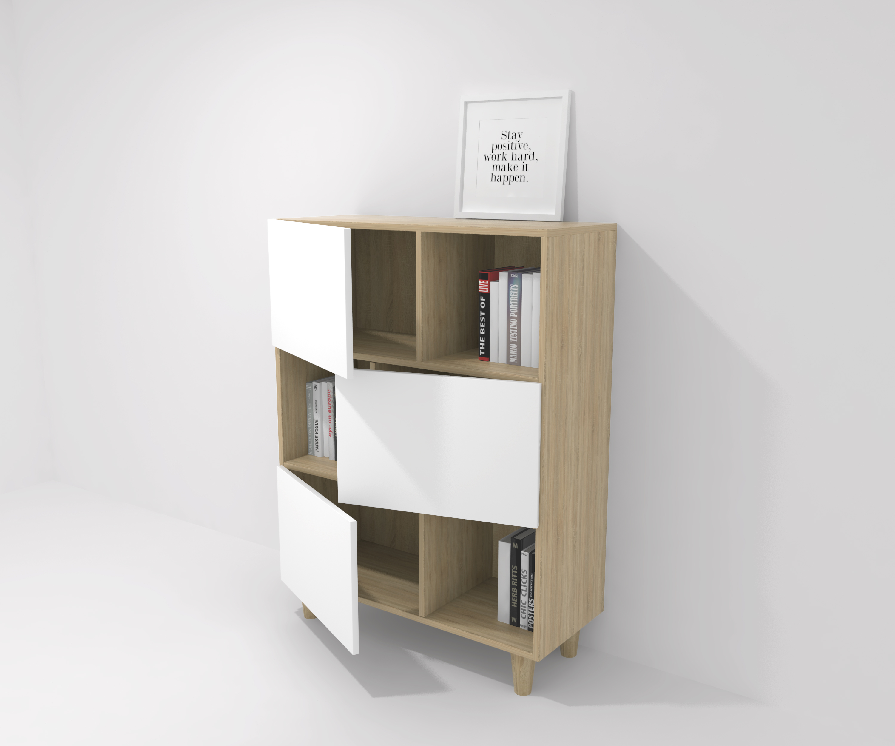 Aparador decorativo fabricado en tablero laminado de partículas. Infinidad de combinaciones posibles con todos los módulos o composiciones de la colección CREA. Se entrega desmontado, fácil montaje. Fabricado en España.