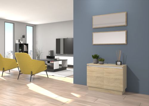 Mueble recibidor fabricado en tablero laminado de partículas. Infinidad de combinaciones posibles con todos los módulos o composiciones de la colección CREA. Se entrega desmontado, fácil montaje. Fabricado en España.