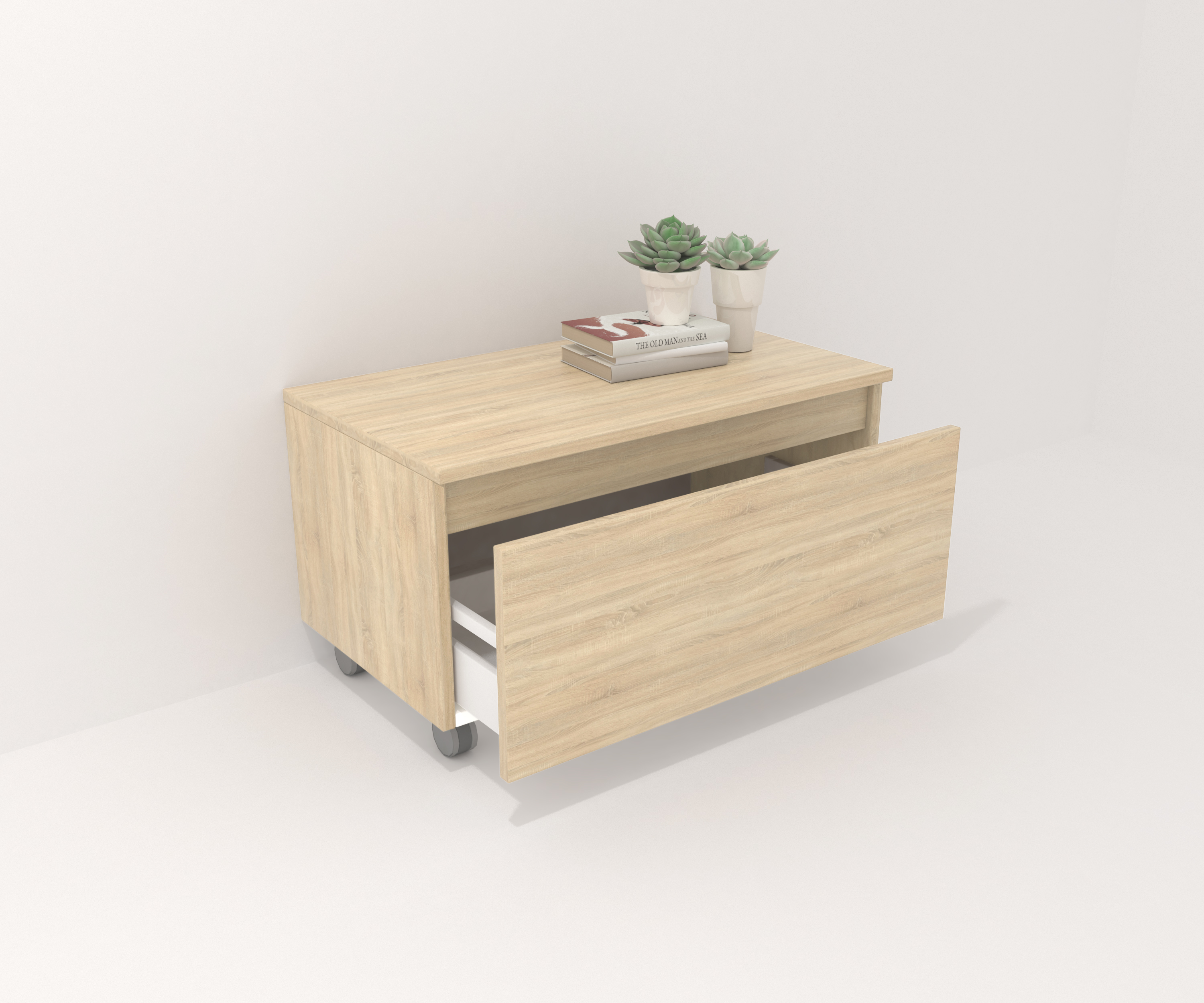 Mueble auxiliar fabricado en material laminado de 19mm. Compuesto por un cajón de gran capacidad, totalmente extraíble y con cierre suave. Perfecto para colocar bajo un lavabo suspendido o para ampliar el espacio de almacenaje en cualquier rincón. Fabricado en España.