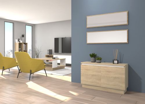 Mueble recibidor fabricado en tablero laminado de partículas. Infinidad de combinaciones posibles con todos los módulos o composiciones de la colección CREA. Se entrega desmontado, fácil montaje. Fabricado en España.