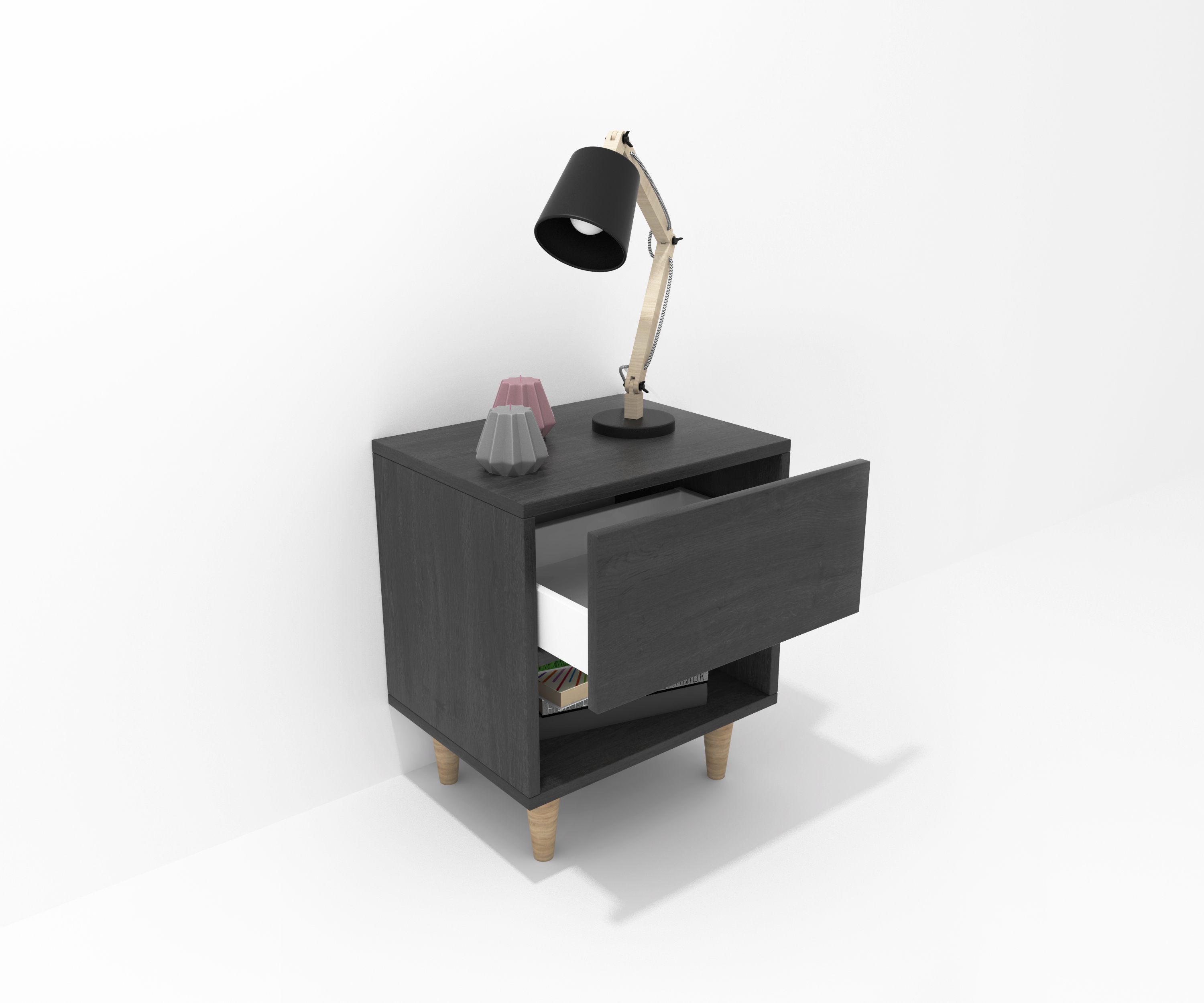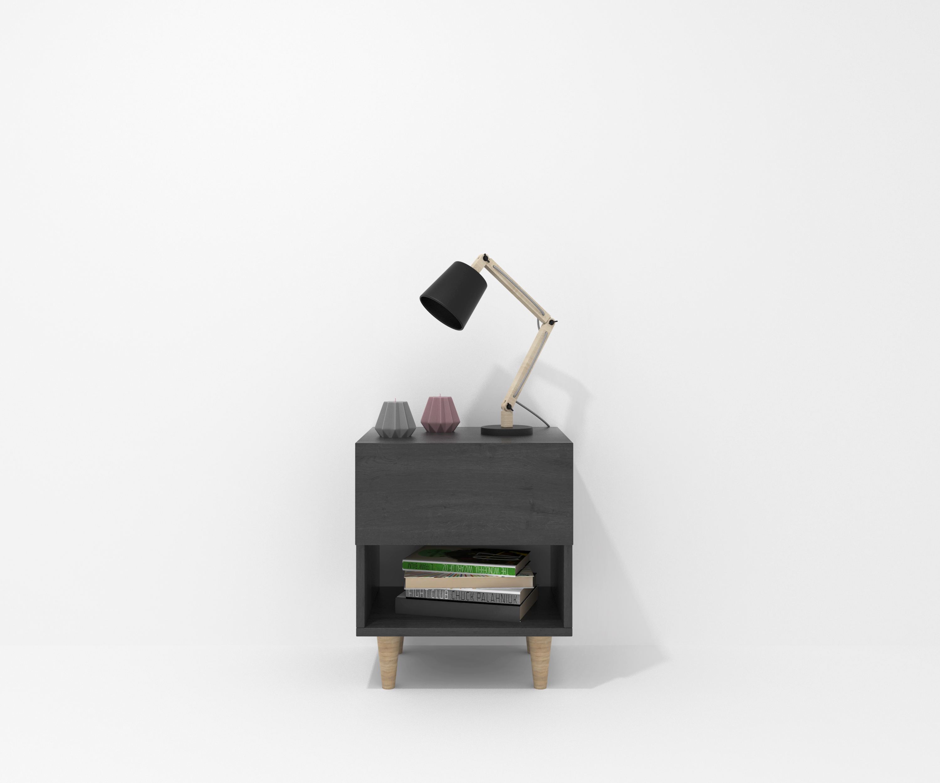 Mesita de noche fabricada en tablero laminado de partículas. Infinidad de combinaciones posibles con todos los módulos o composiciones de la colección CREA. Se entrega desmontado, fácil montaje. Fabricado en España.