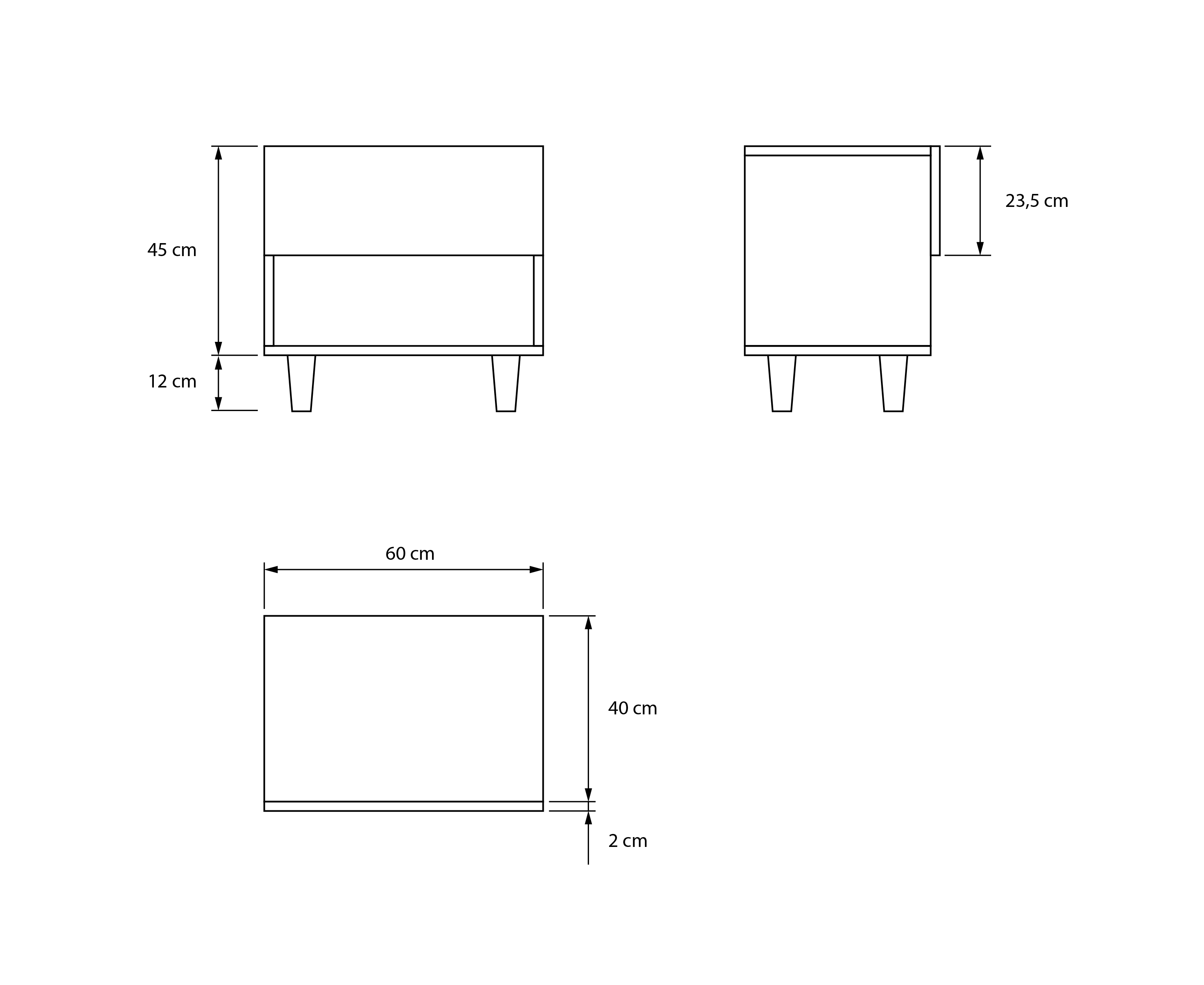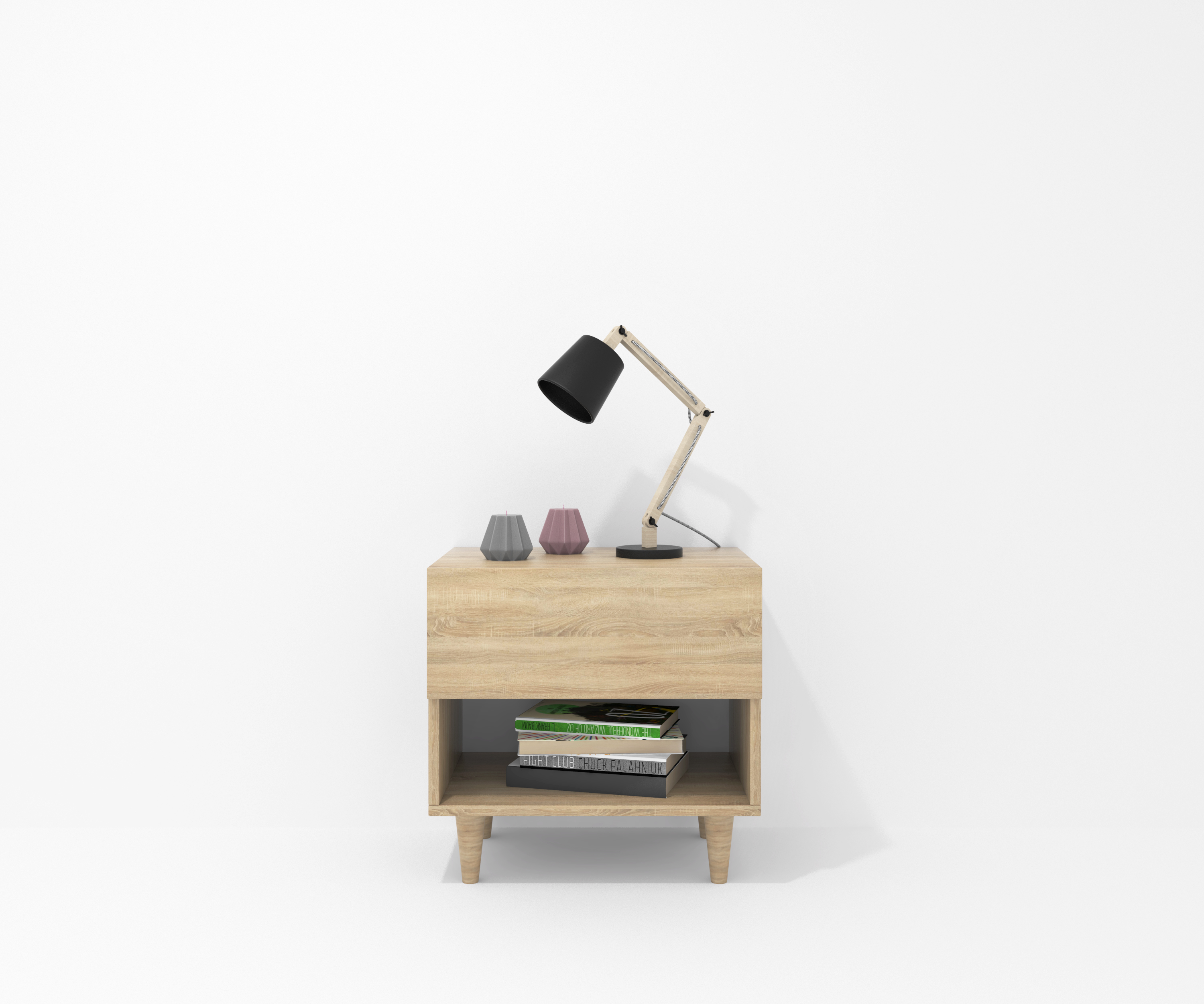 Mesita de noche fabricada en tablero laminado de partículas. Infinidad de combinaciones posibles con todos los módulos o composiciones de la colección CREA. Se entrega desmontado, fácil montaje. Fabricado en España.