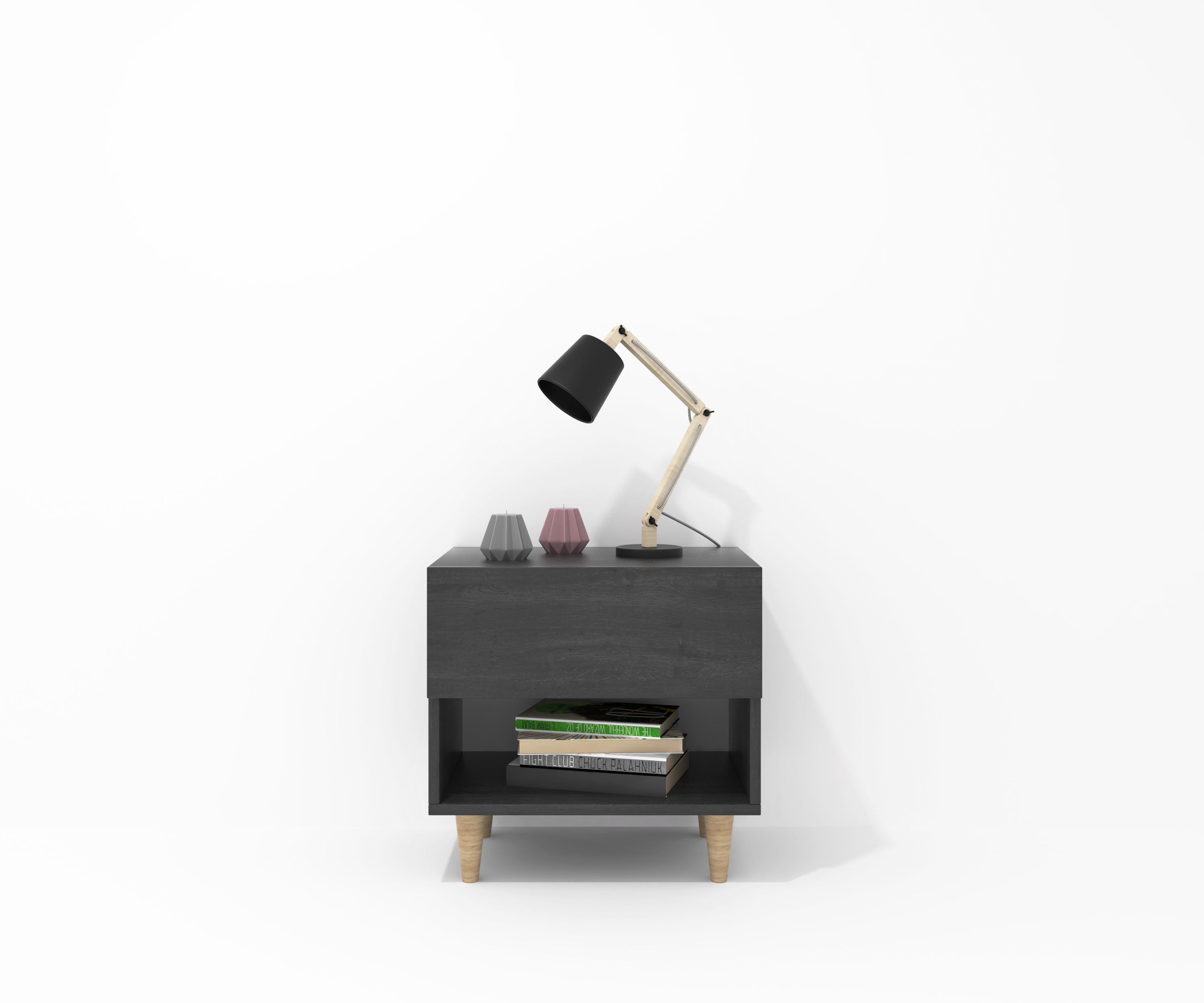 Mesita de noche fabricada en tablero laminado de partículas. Infinidad de combinaciones posibles con todos los módulos o composiciones de la colección CREA. Se entrega desmontado, fácil montaje. Fabricado en España.
