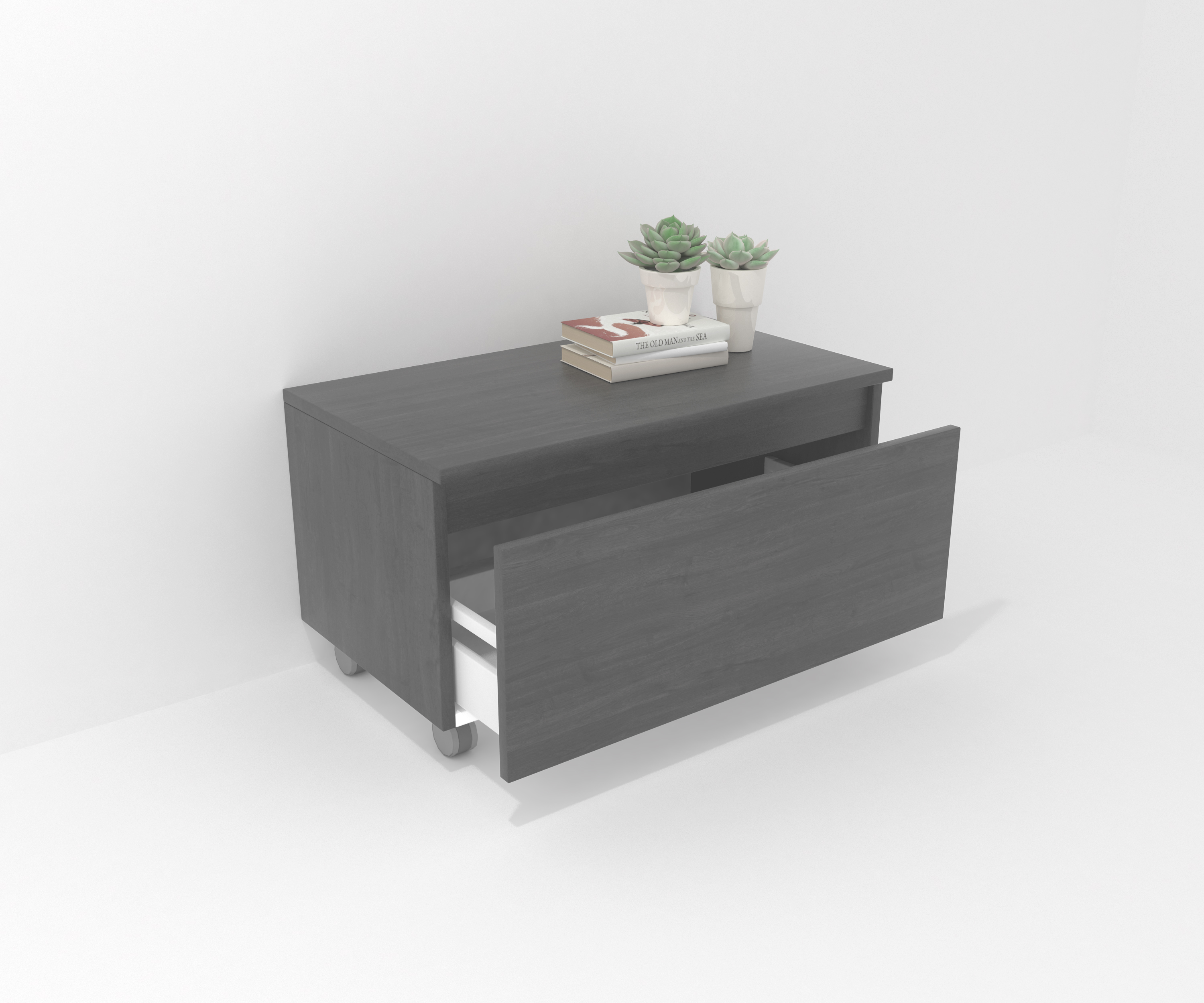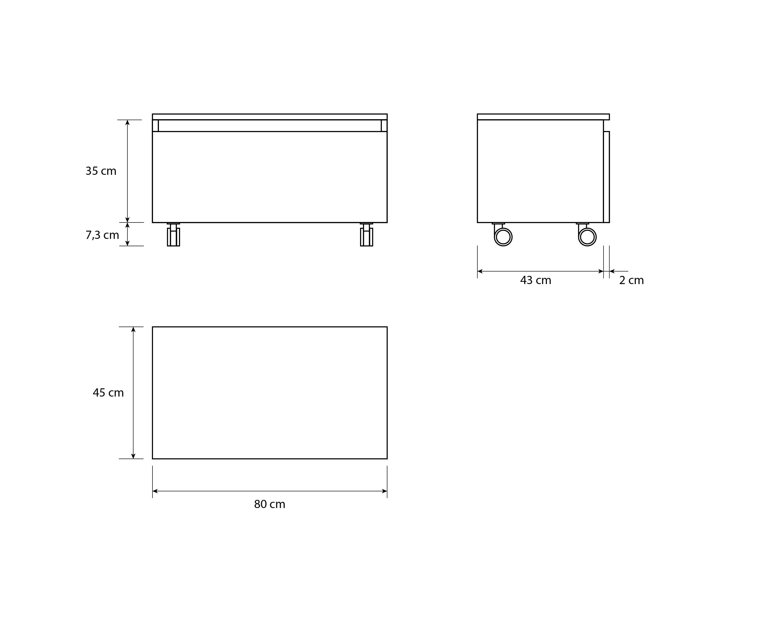 Mueble auxiliar fabricado en material laminado de 19mm. Compuesto por un cajón de gran capacidad, totalmente extraíble y con cierre suave. Perfecto para colocar bajo un lavabo suspendido o para ampliar el espacio de almacenaje en cualquier rincón. Fabricado en España.