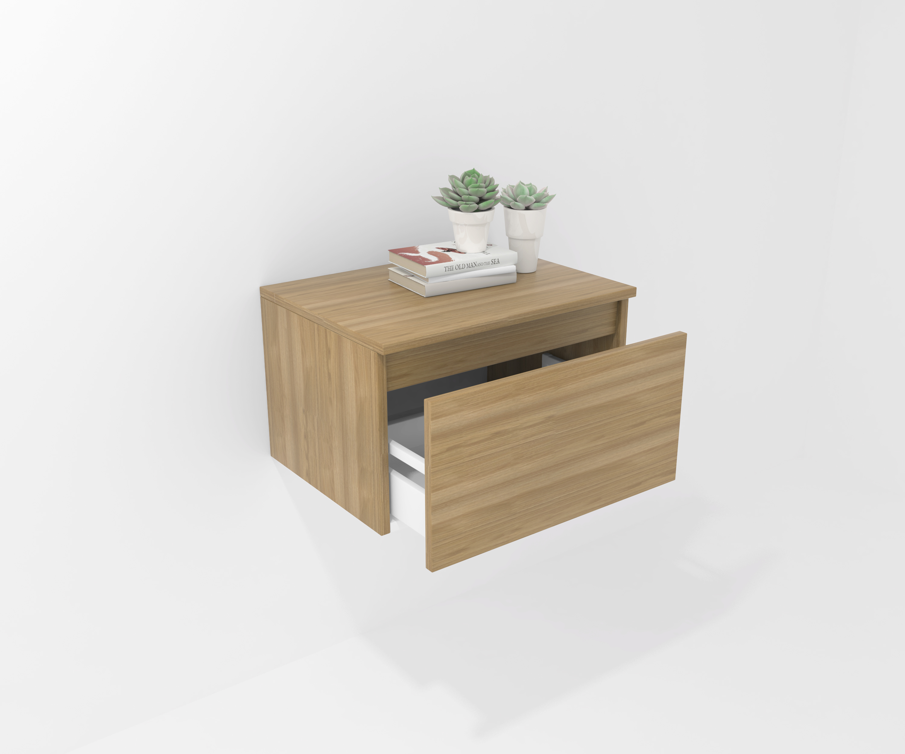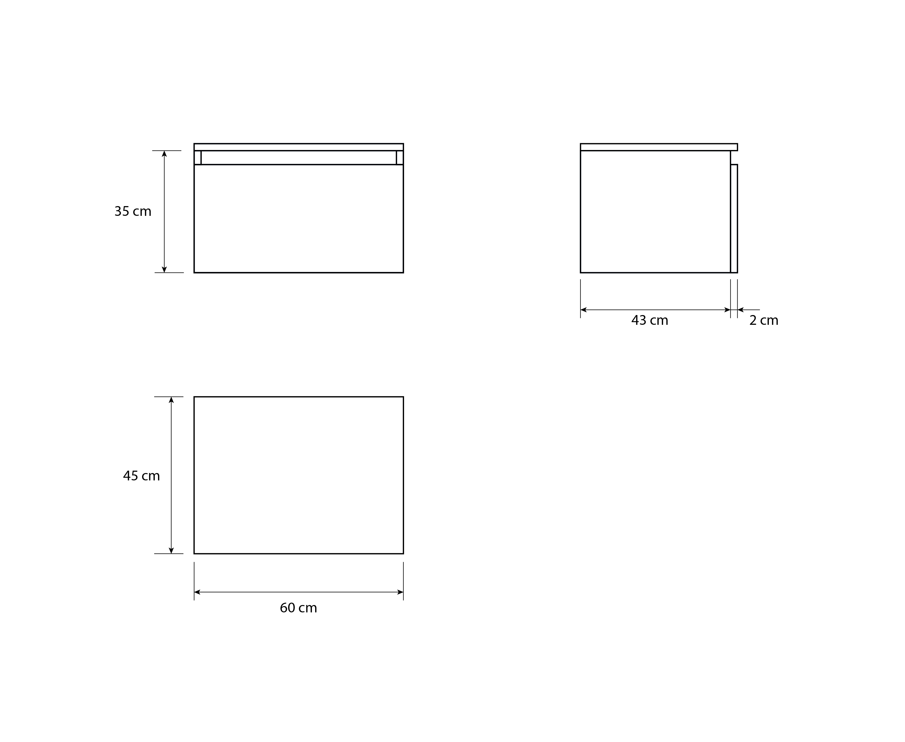 Mueble auxiliar fabricado en material laminado de 19mm. Compuesto por un cajón de gran capacidad, totalmente extraíble y con cierre suave. Perfecto para colocar bajo un lavabo suspendido o para ampliar el espacio de almacenaje en cualquier rincón. Fabricado en España.