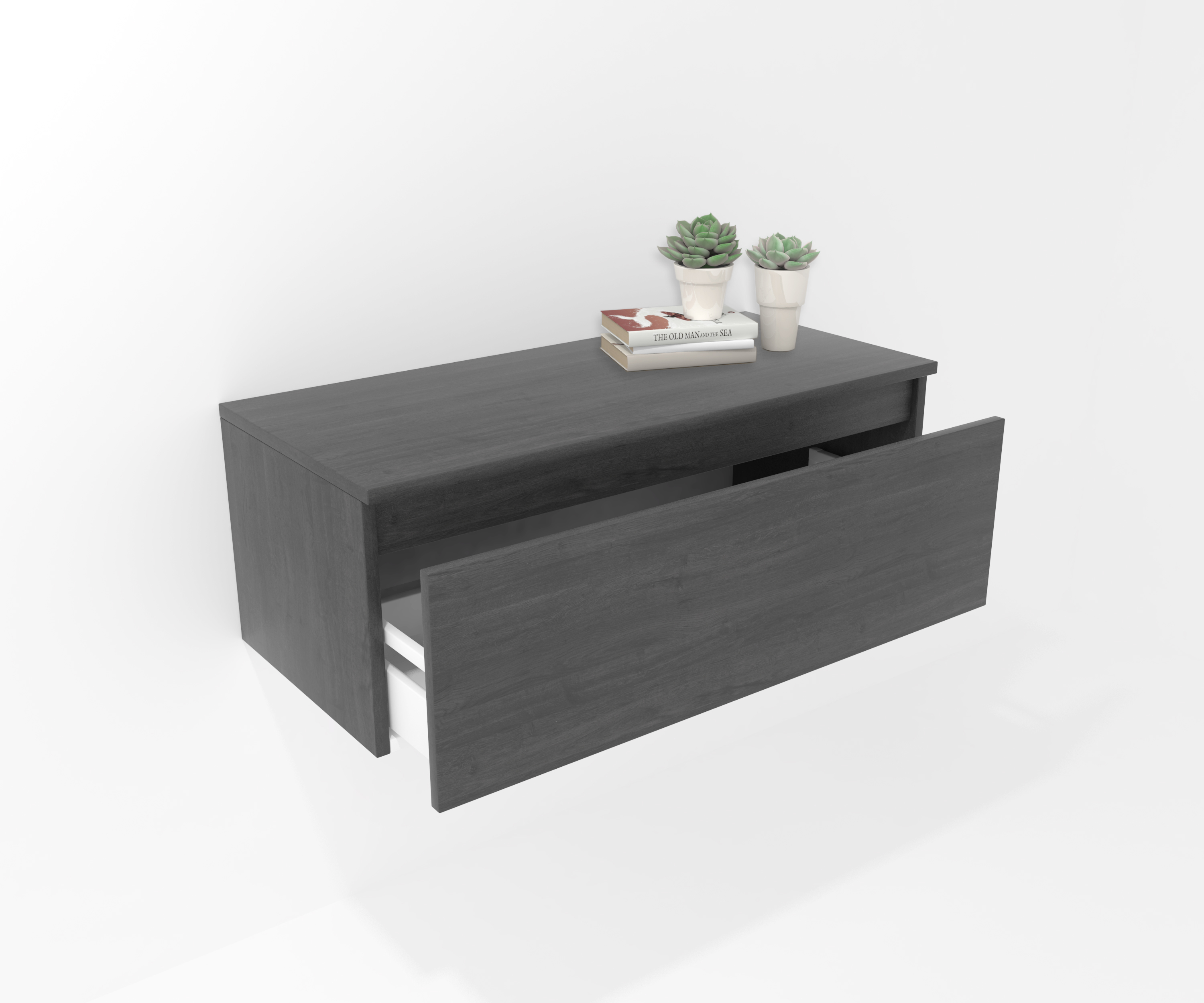Mueble auxiliar fabricado en material laminado de 19mm. Compuesto por un cajón de gran capacidad, totalmente extraíble y con cierre suave. Perfecto para colocar bajo un lavabo suspendido o para ampliar el espacio de almacenaje en cualquier rincón. Fabricado en España.