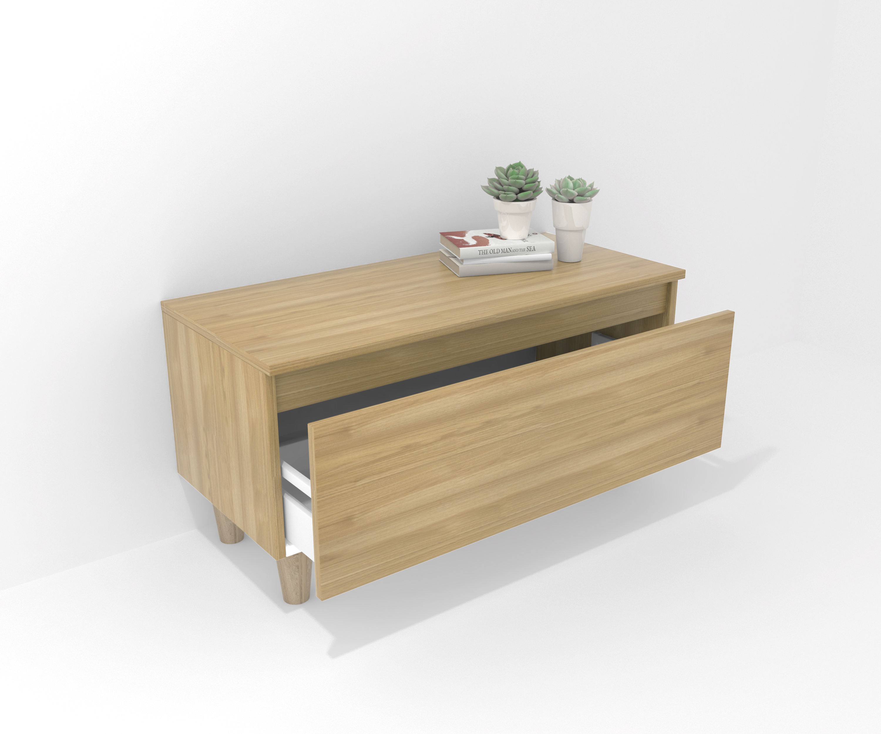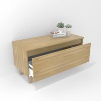 Mueble auxiliar fabricado en material laminado de 19mm. Compuesto por un cajón de gran capacidad, totalmente extraíble y con cierre suave. Perfecto para colocar bajo un lavabo suspendido o para ampliar el espacio de almacenaje en cualquier rincón. Fabricado en España.