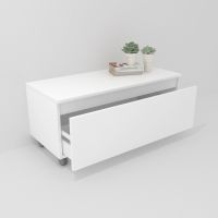 Mueble auxiliar fabricado en material laminado de 19mm. Compuesto por un cajón de gran capacidad, totalmente extraíble y con cierre suave. Perfecto para colocar bajo un lavabo suspendido o para ampliar el espacio de almacenaje en cualquier rincón. Fabricado en España.
