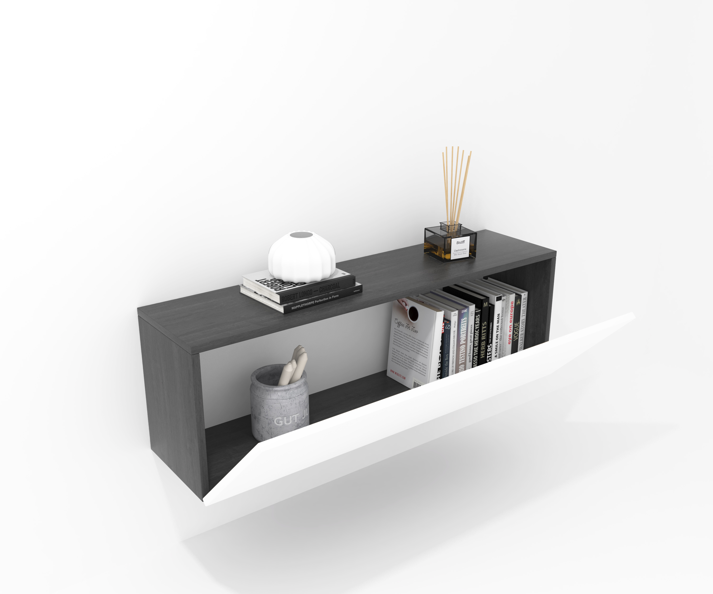 Mueble con puerta abatible, ideal para combinar con todos los módulos o composiciones de la colección CREA. Mueble fabricado en tablero laminado de partículas . Gran capacidad de almacenaje interior. Preparado para ser colgado en la pared con posibilidad de añadir patas o ruedas. Se entrega desmontado, fácil montaje. Fabricado en España.